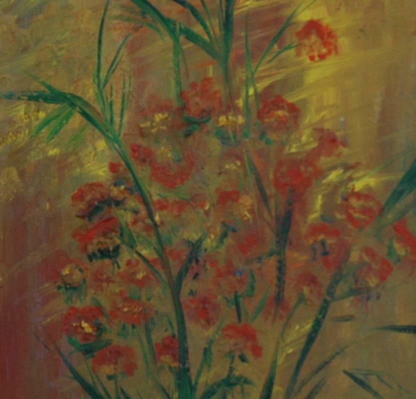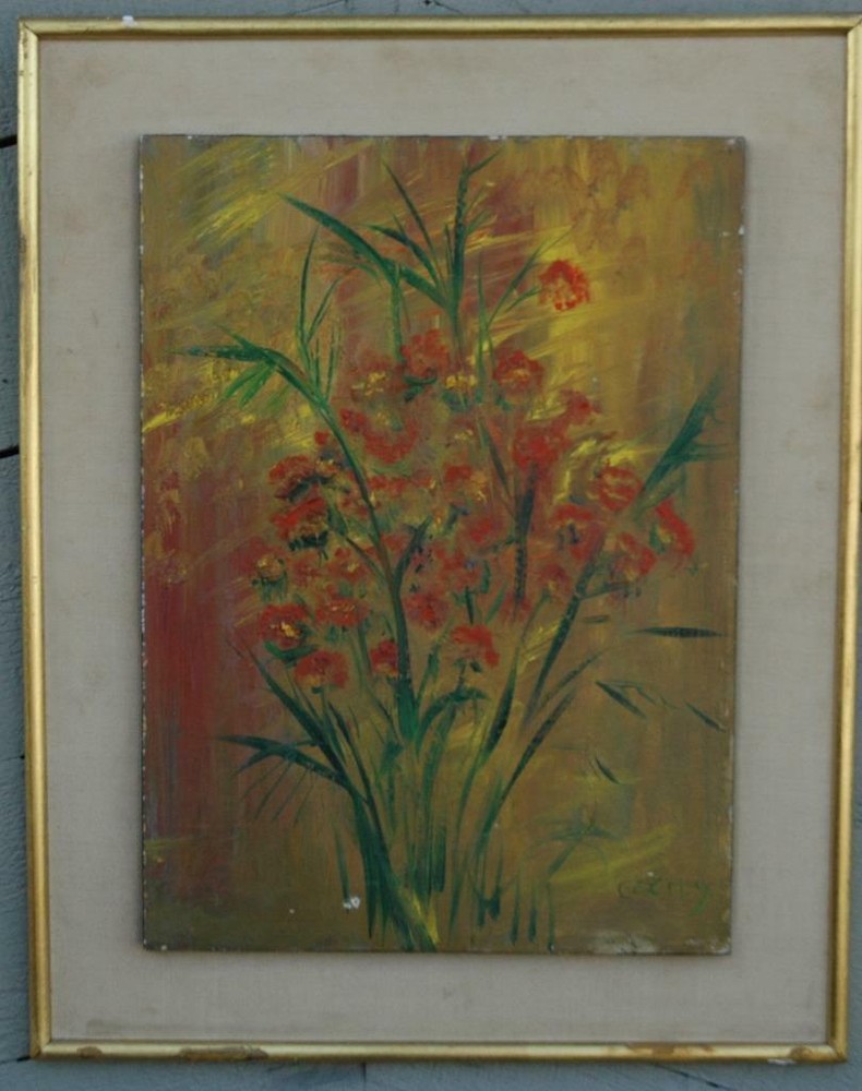 Offered for Sale is an Original Oil on Panel of A Mid Century Floral With Orange Flowers - Signed Cecily lower right - very well executed with great colors and detail - the wood panel is attached to a backing frame, which has wear - the painting itself has a small white speck at the bottom, otherwise in nice condition - it could be removed and reframe to cover a little bit of edge wear - overall size is about 19" x 15" and painting size is 14 1/2" x 10 1/2" Original Oil on Panel of A Mid Century Floral With Orange Flowers Signed Cecily Original Oil on Panel of A Mid Century Floral With Orange Flowers Signed Cecily Click images to enlarge Description Offered for Sale is an Original Oil on Panel of A Mid Century Floral With Orange Flowers - Signed Cecily lower right - very well executed with great colors and detail - the wood panel is attached to a backing frame, which has wear - the painting itself has a small white speck at the bottom, otherwise in nice condition - it could be removed and reframe to cover a little bit of edge wear - overall size is about 19" x 15" and painting size is 14 1/2" x 10 1/2" purchased at a Florida estate auction house FLORIDA RESIDENTS MUST PAY 7% STATE SALES TAX BAY1120 Shipping Items to continental US will be send via USPS media mail or Parcel Post unless other arrangements are made. Handling time is up to 4 business days prior to shipping. There are many expenses involved in shipping your product safely including padded mailers, bubble wrap, peanuts, tape, FRAGILE stickers, and in most cases insurance since insurance is now seller's responsibility. Understand that shipping costs may reflect a charge for these items. It is also sometimes difficult to estimate shipping costs before the item is actually packaged up. If you feel you have been overcharged, please contact me before leaving negative feedback. If there is a large discrepancy, I will make an adjustment, often before you ask! Terms of Sale Full refunds are available if not satisfied. Item must be returned in same condition as shipped. Kindly contact me immediately should you in any way be unhappy with your purchase, as I will make every effort to correct the situation, as evidenced by my feedback track record. Pictures sell! Auctiva offers Free Image Hosting and Editing. 300+ Listing Templates! Auctiva gets you noticed! The complete eBay Selling Solution. Track Page Views With Auctiva's FREE Counter