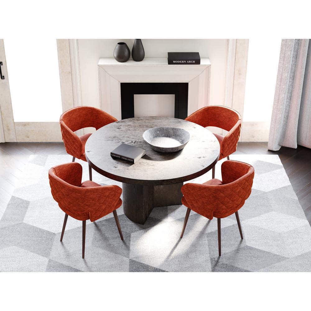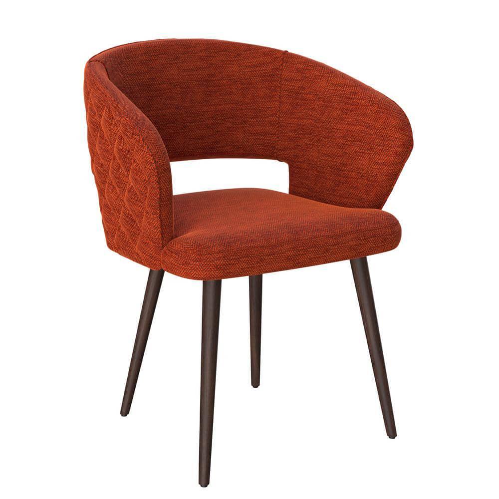 Love this chair! The bold orange color adds a pop of fun to my dining area, and the cushion is so comfy—no sore back after long dinners. The sturdy wood frame feels high-quality, and the tufted design gives it a stylish vintage look. Fits perfectly in my space and arrived fast with no issues. Definitely worth it!