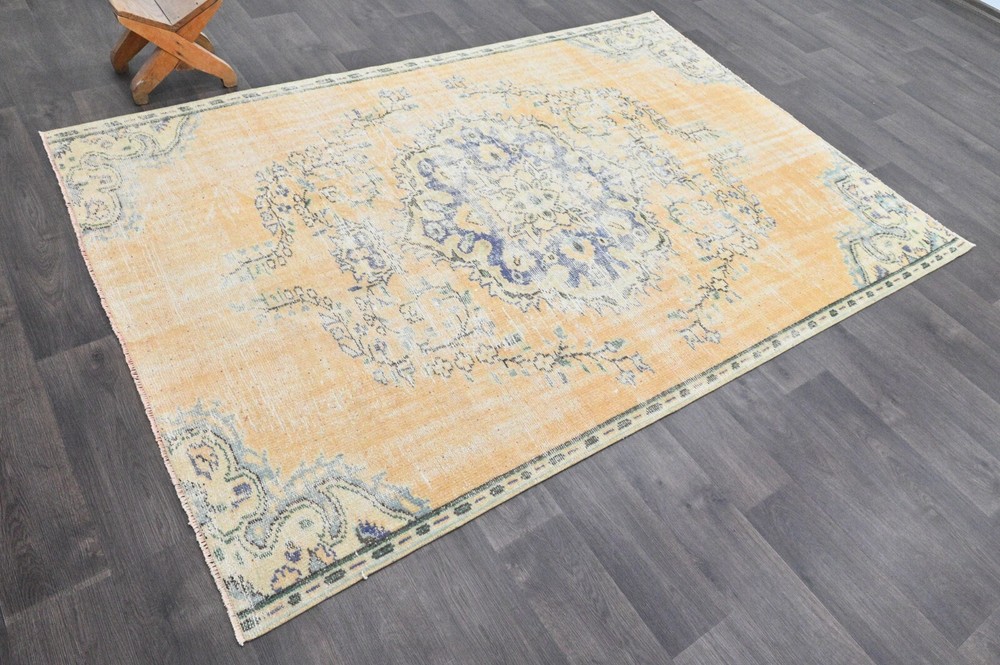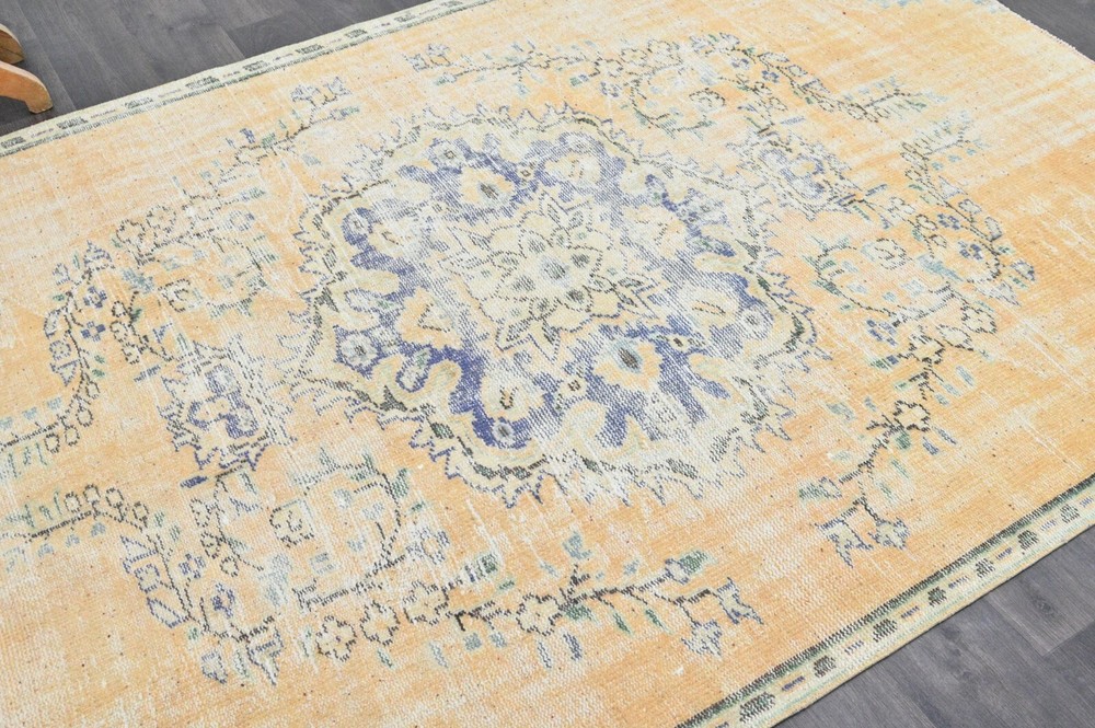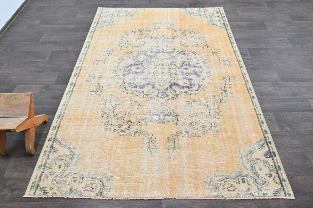 This orange 5x8 vintage rug is a timeless art piece made by artisans in the Oushak Anatolia region of Turkey. This carpet was hand woven with fine quality natural wool which extends the durability of the rug for generations. This unique Turkish vintage rug was handmade during the 1960’s and is made of 100% wool on a cotton foundation. If you’re looking for an authentic oriental carpet to invigorate your home, this oriental Turkish rug will be a great add to any decor style. This anatolian rug measures 5'2 x 7'6 feet - 63 x 91 inches - 161x232 centimeters - SKU:8678 All vintage rugs we offer are thoroughly washed and cleaned and are ready to use as soon as you receive them. Age-related wear and natural inconsistencies are inherent in all handmade vintage rugs. Each vintage rug we offer is one-of-a-kind and authentic so there's only one unit in stock! We offer free worldwide shipping for all vintage rugs in 1-2 business days. It takes 3-6 business days business days to reach North America, 3-5 for Europe and 7-10 to Australia and New Zeeland. We pay special attention to make sure that the colors of the vintage rugs are represented as accurately as possible. Still, there may be slight variations in what you see on your computer/phone depending on the screen’s color, contrast, and brightness.