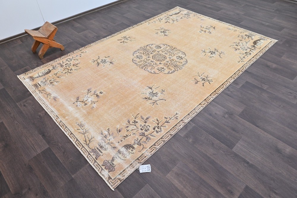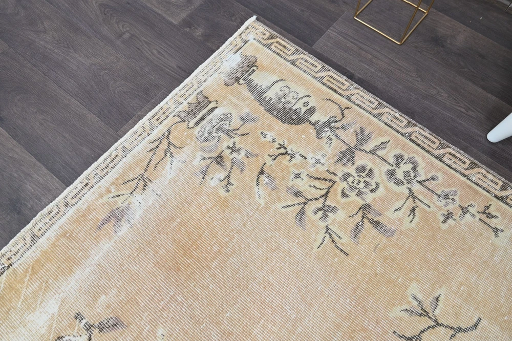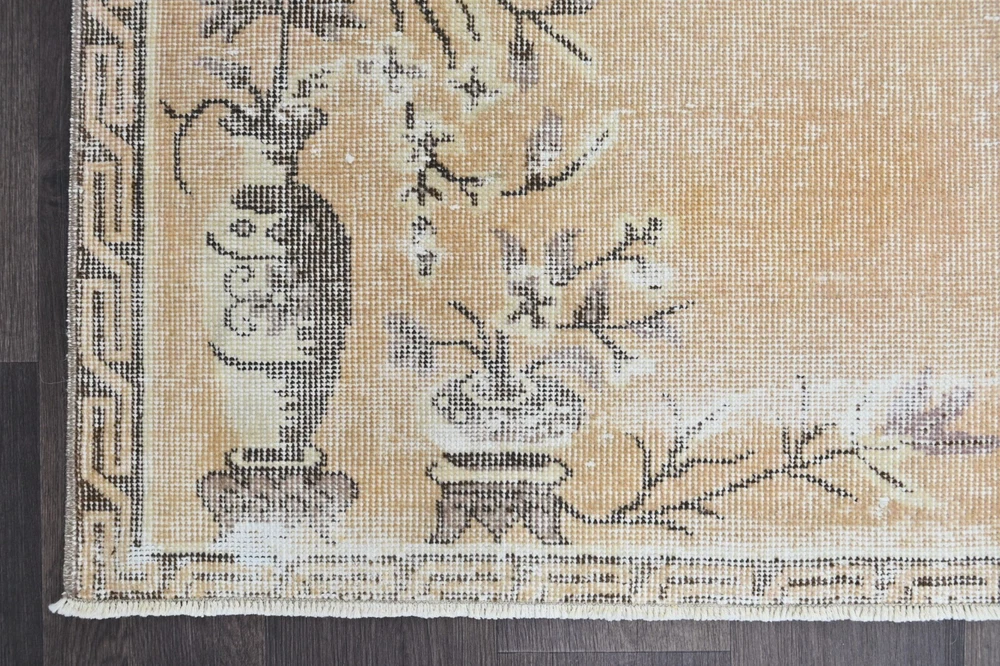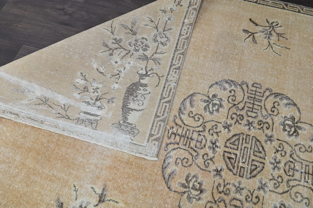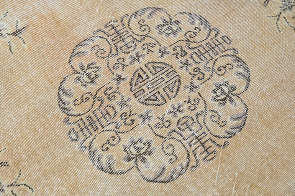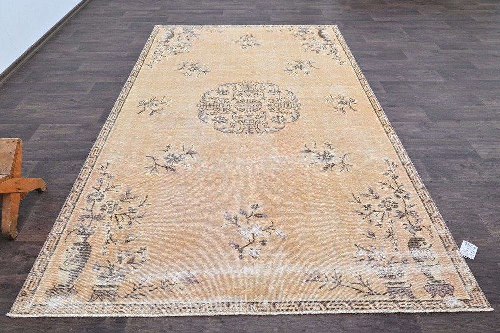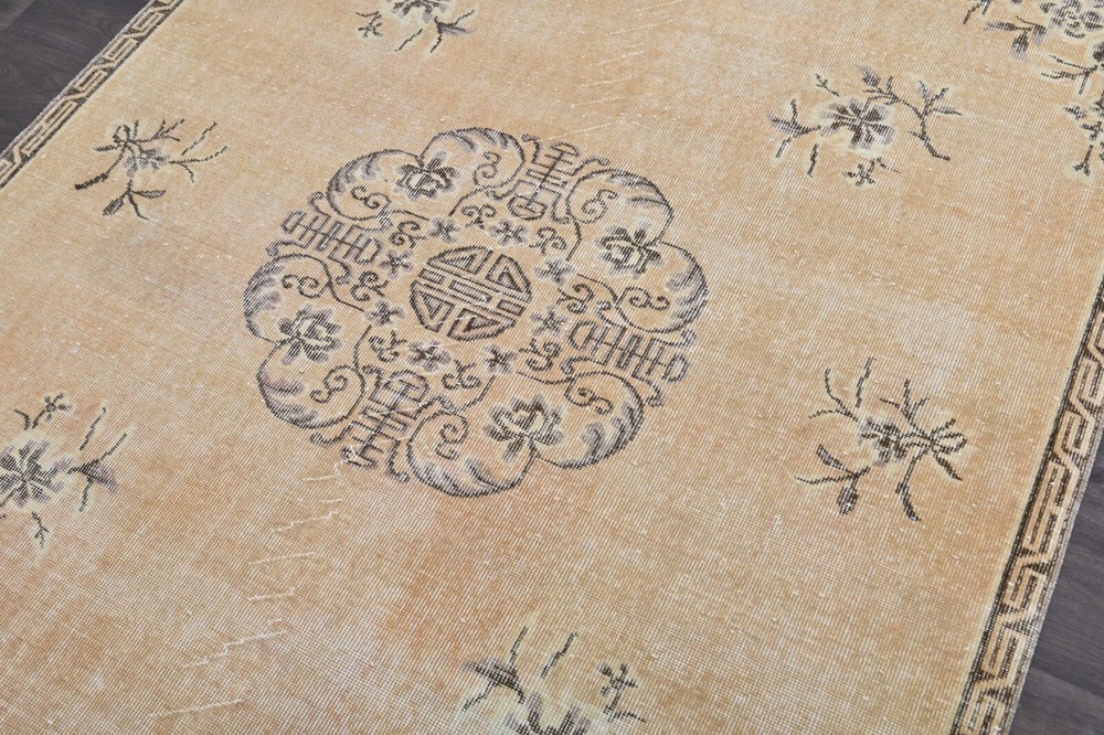 This orange 5x9 vintage rug is a timeless art piece made by artisans in the Oushak Anatolia region of Turkey. This carpet was hand woven with fine quality natural wool which extends the durability of the rug for generations. This unique Turkish vintage rug was handmade during the 1960’s and is made of 100% wool on a cotton foundation. If you’re looking for an authentic oriental carpet to invigorate your home, this oriental Turkish rug will be a great add to any decor style. This anatolian rug measures 5'5 x 8'7 feet - 66 x 105 inches - 169x267 centimeters - SKU:7432 All vintage rugs we offer are thoroughly washed and cleaned and are ready to use as soon as you receive them. Age-related wear and natural inconsistencies are inherent in all handmade vintage rugs. Each vintage rug we offer is one-of-a-kind and authentic so there's only one unit in stock! We offer free worldwide shipping for all vintage rugs in 1-2 business days. It takes 3-6 business days business days to reach North America, 3-5 for Europe and 7-10 to Australia and New Zeeland. We pay special attention to make sure that the colors of the vintage rugs are represented as accurately as possible. Still, there may be slight variations in what you see on your computer/phone depending on the screen’s color, contrast, and brightness.