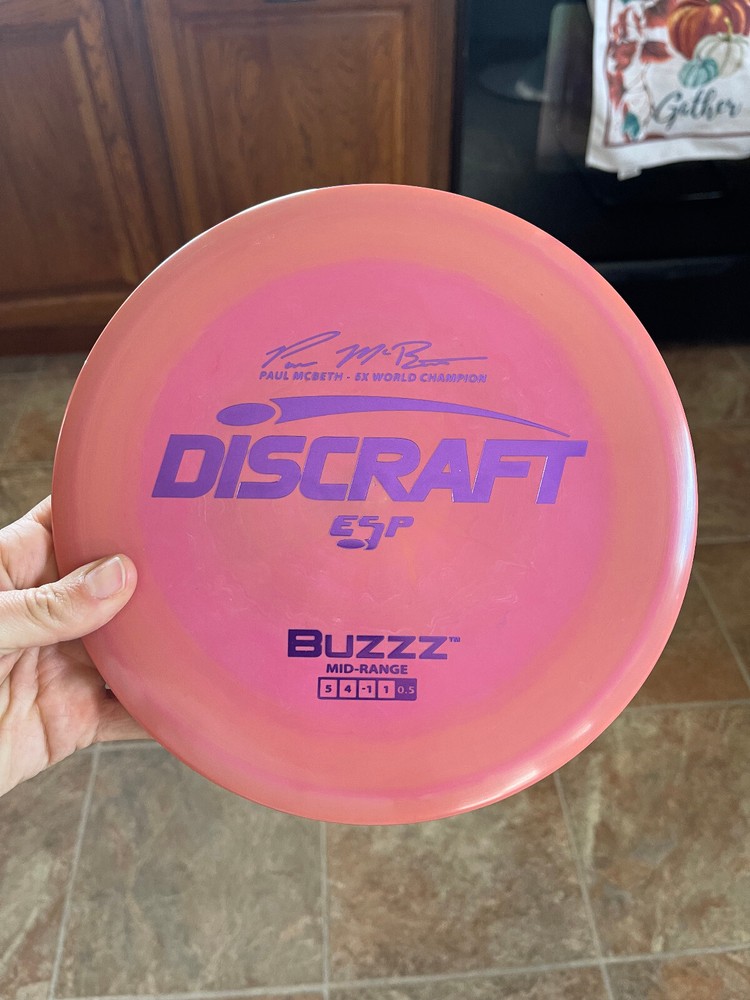 PAUL MCBETH DISCRAFT ESP Buzzz Mid Range Disc 5/4/-1/1 Orange Pink with Purple Foil From smoke free home....