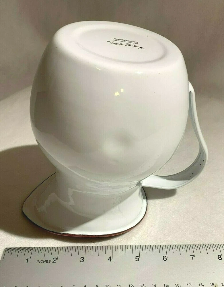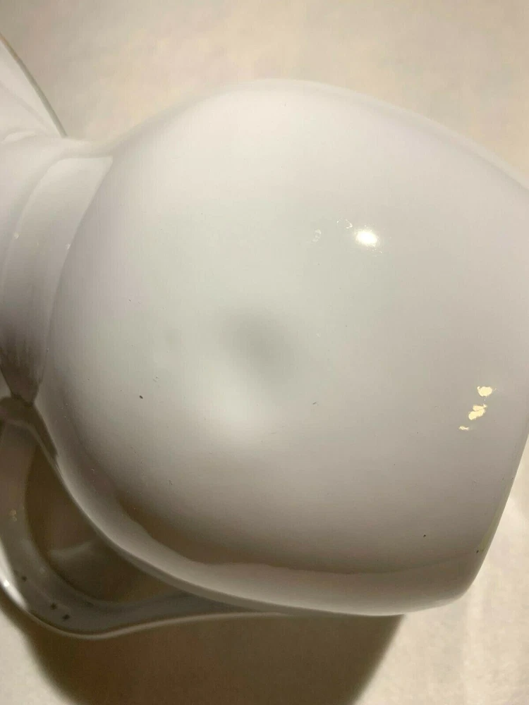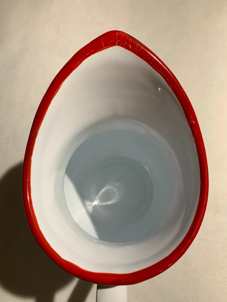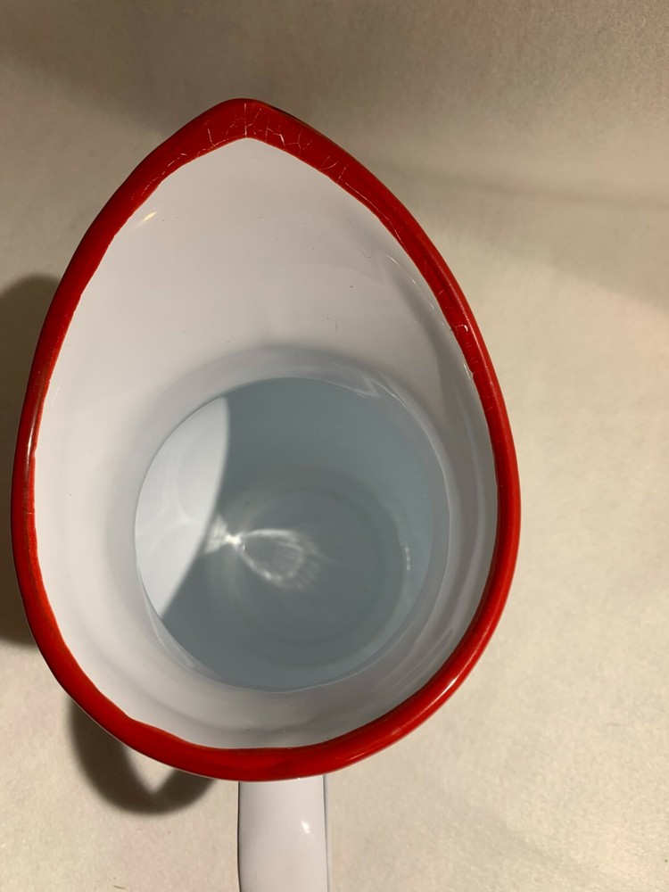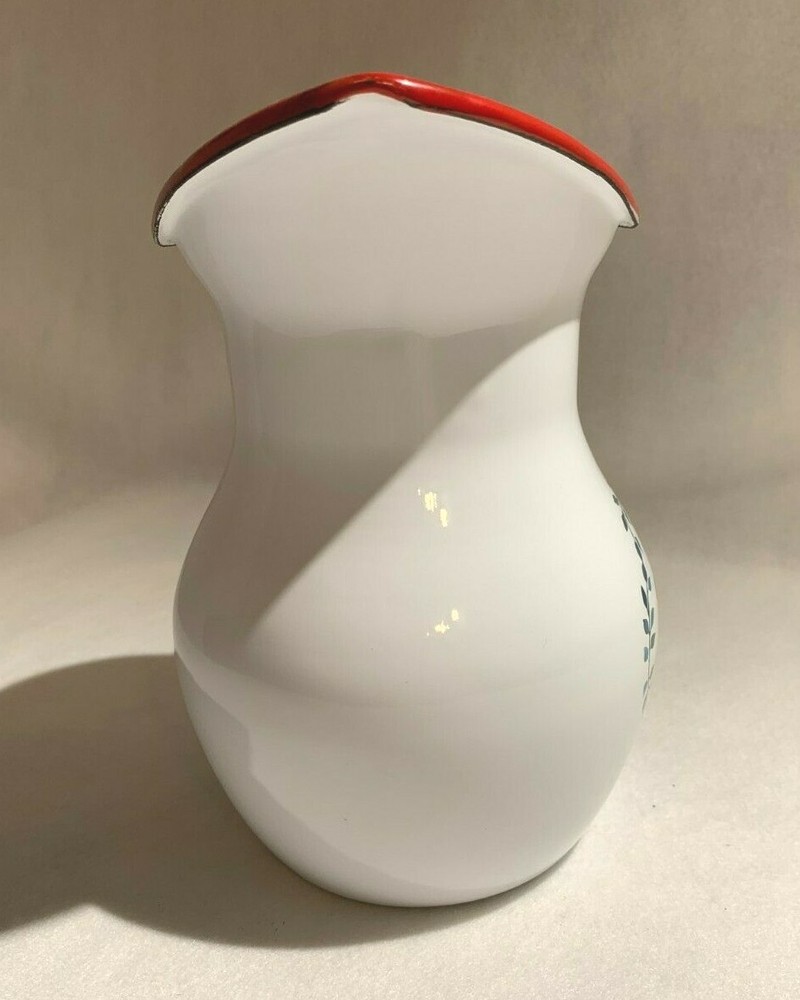 This unique pitcher with a charming rabbit decoration is a must-have for any kitchen. It is made of high-quality enameled metal ware and is hard to find. The pitcher is perfect for serving your favorite beverage, and the white and multi-color design will complement any home decor. The brand behind this beautiful piece is Creative Co-Op, a trusted name in the industry. The pitcher is ideal for use during dinner parties or gatherings, but is a fantastic decorative item and its sturdy construction ensures that it will last for years to come. The material is metal, which gives it a durable and long-lasting quality. This pitcher is a great addition to any collection and is sure to be a conversation starter. Please examine all photos before purchase. Item is not new. This is a found item, Seller does not know the exact origin of the piece.