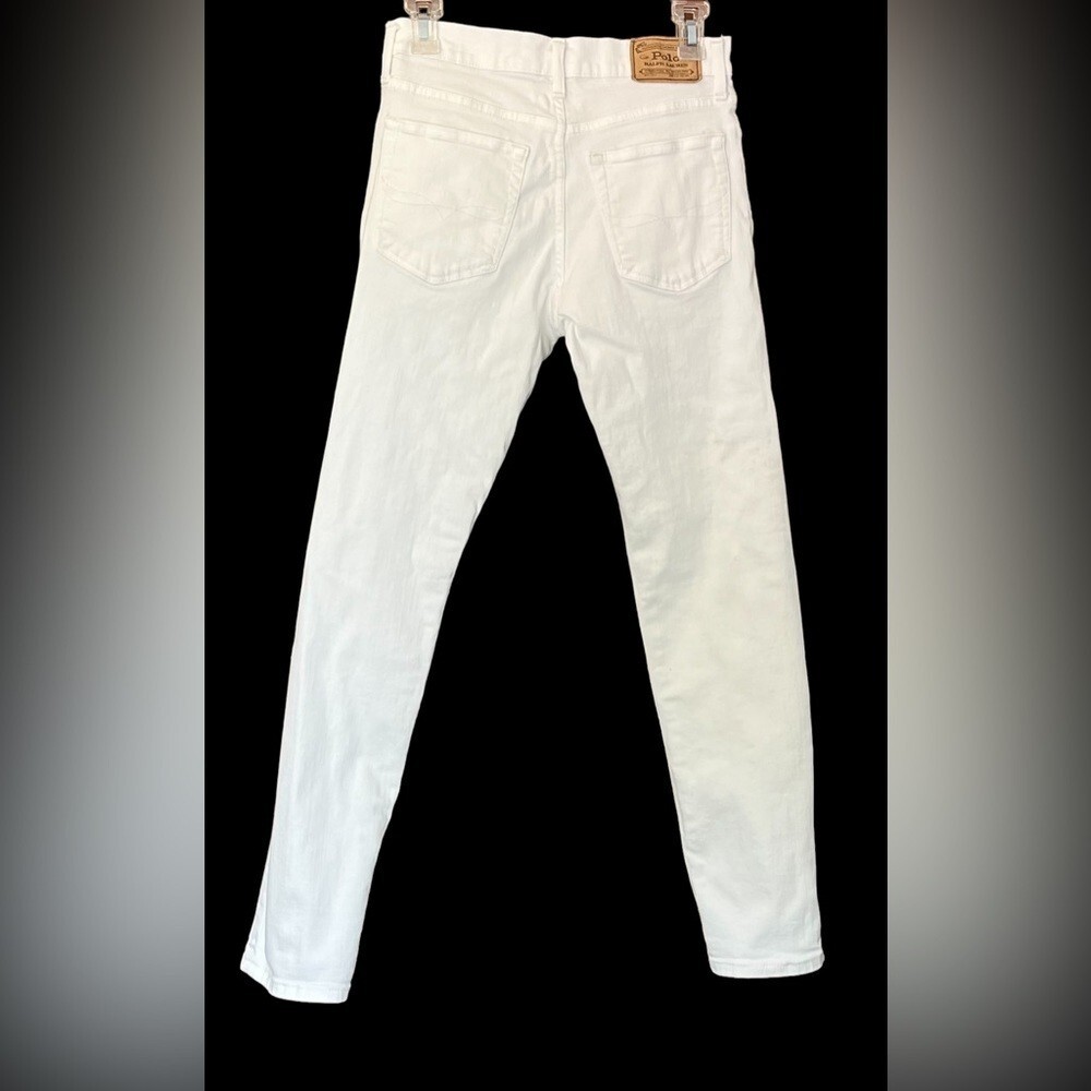 All orders ship next business day! Polo white denim jeans, button and zipper closure, 5 pocket front, 2 pockets in back Condition: clean, great preowned condition Color: white Size: Large (Boys 16), Length- 38", Waist- 28", Inseam- 28" (approximate) Material: 100% cotton Technically a boys size but see measurements E1 Smoke free and pet free home!