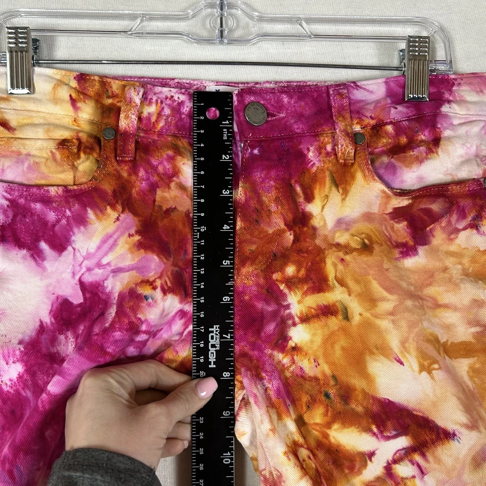 These jeans are a dream—awesome retro ice-dye color, perfect mid-rise fit, and super comfy. Lightly worn but look brand new, no flaws at all. Seller shipped fast and was super helpful. Love the vintage vibe and unique style! Would buy again for sure.