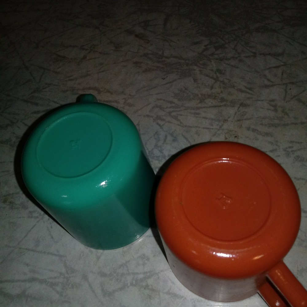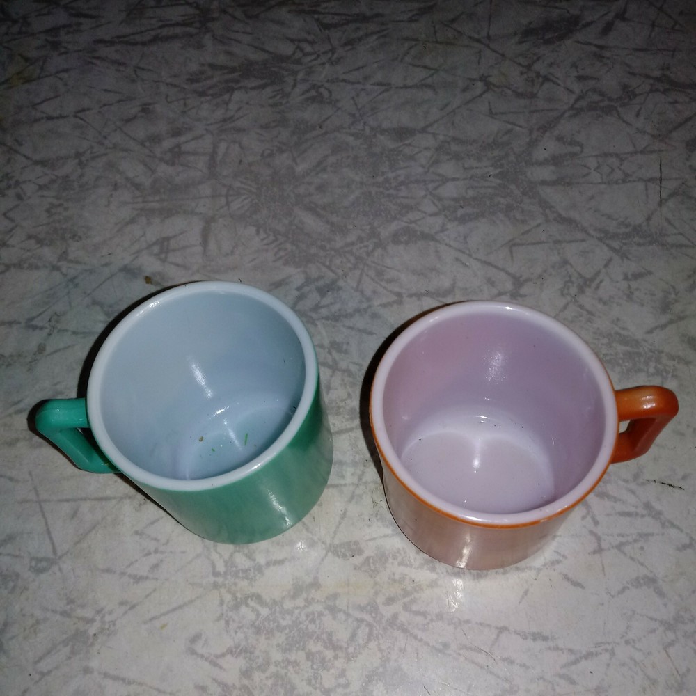 Pair Hazel Atlas Ovide Turquoise Teal Orange Rust Mugs Cups milk glass mid centu. Condition is "Used". Shipped with USPS Priority Mail.