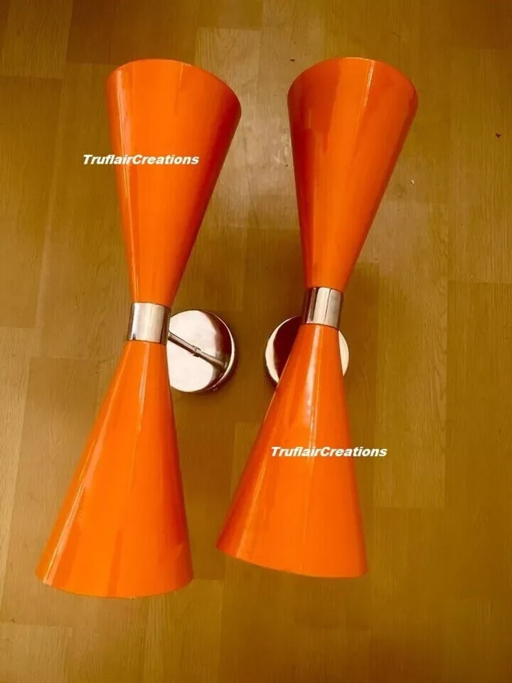 Premium quality mid-century Wall Fixture. - Made of pure brass brass shiny finish . other brass finishes are available at request. - Measurements is :L x 8 inch w x 5'' inch H x 12'' inch Ceiling Wall canopy To Light Socket Edge - Set of Two Diabolo Wall Fixture Socket: Standard Medium Base (E-12) Installation: Direct Wired into Wall (Canopy & Installation Hardware Included! Maroon & Brushed brass finish Materials: Brass, Metal All Components are UL approved. Bulb Type: Requires 2 E-12 socket rated with 125 - 75 voltage. 7 watts to 15-watt bulbs are recommended. Incandescent Bulbs, Energy Saying, LED Bulbs. Bulb not included. Wall Fixture used standard candelabra E-27, E-14 E12 light bulbs. (not included) every type of bulb holder available.