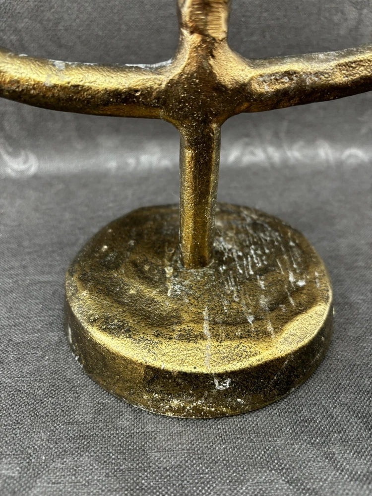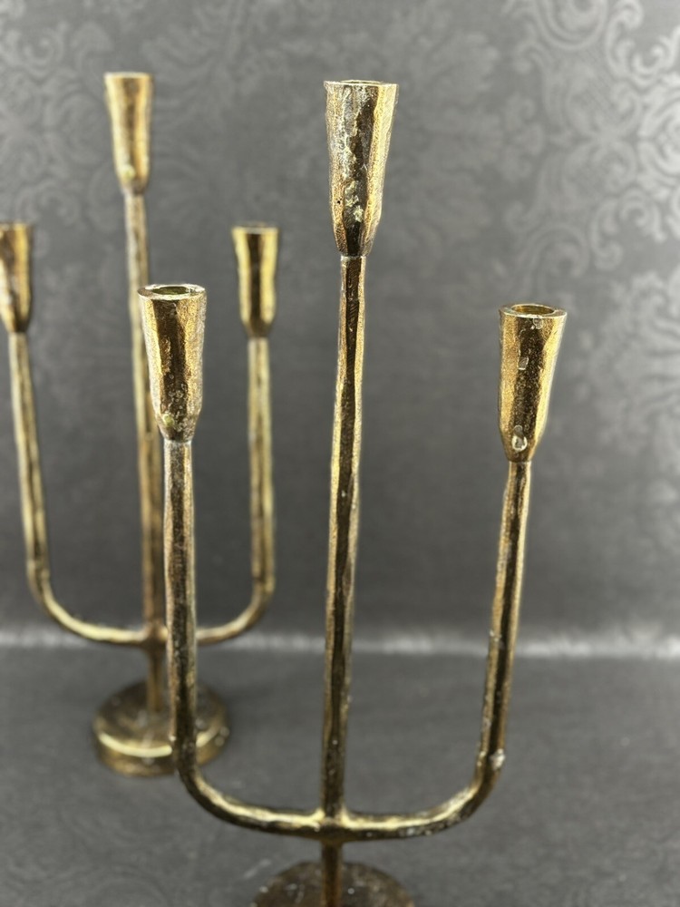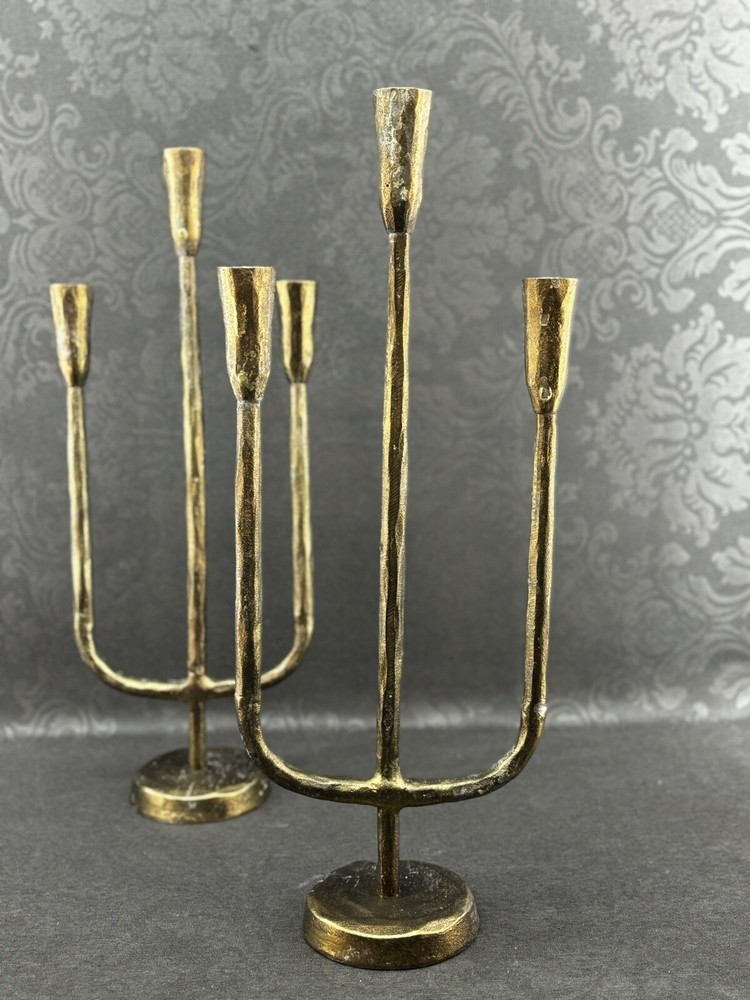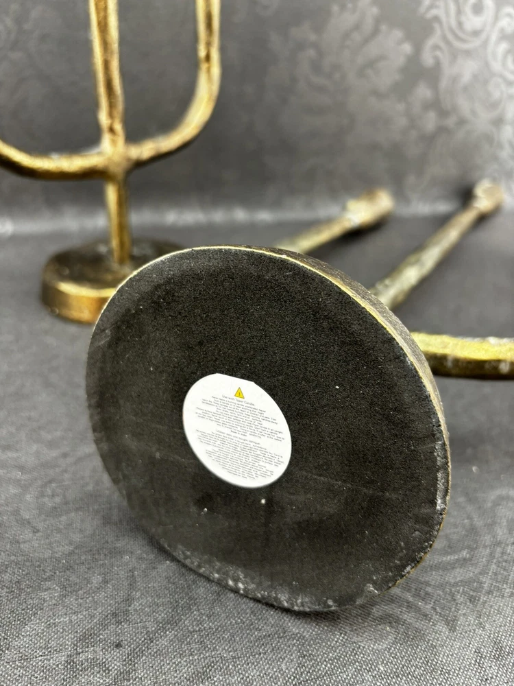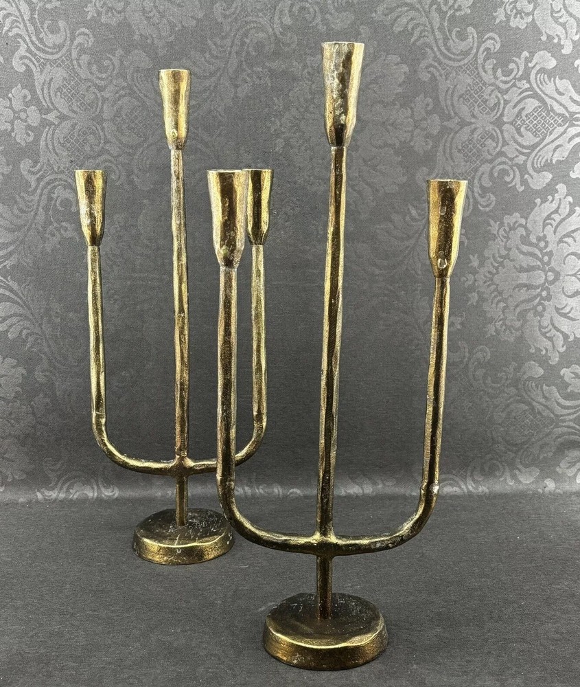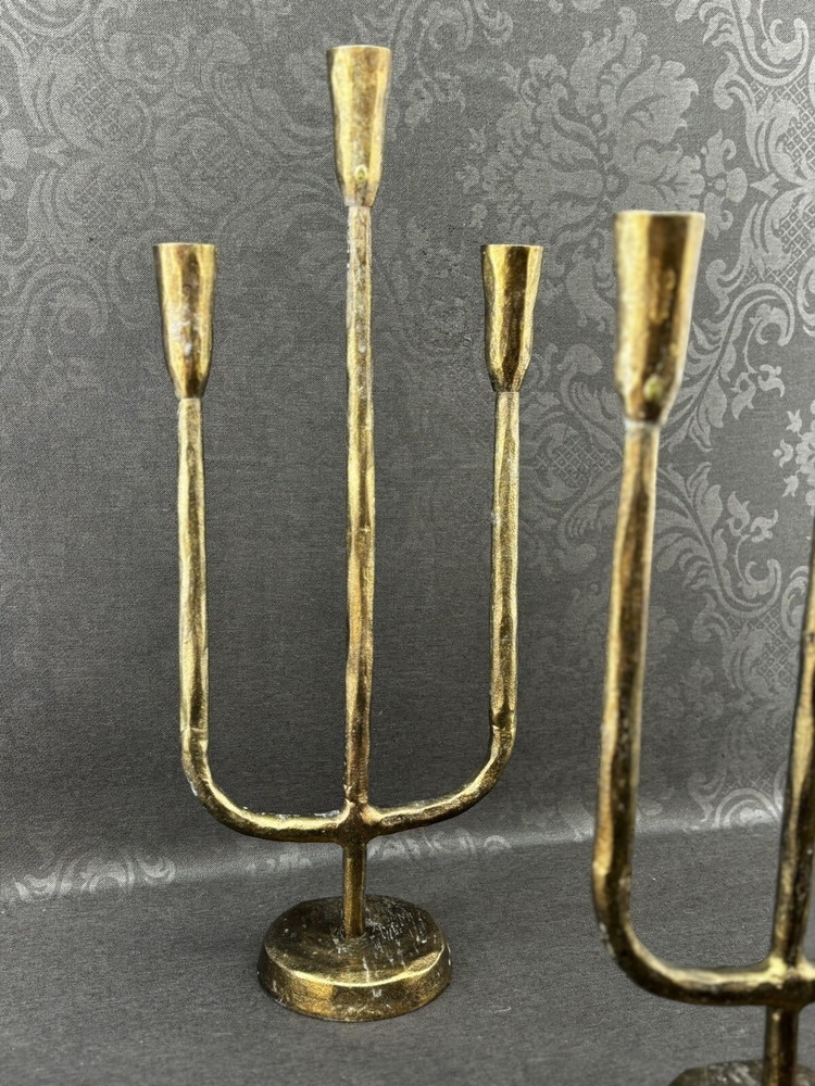 This is a very beautiful pair of large candleholders done in this rich golden finish forged brutalist style. They stand about 21 inches tall and are in excellent condition, light signs of use, they have been used as candleholders after all. Please have a good look at the many photos and thanks for your consideration. I have many other beautiful things posted here and I'm always happy to combine shipping whenever possible. Thanks for having a look! Shipping quoted is for the lower 48 states if you use a PO Box, APO or live anywhere else in the world please contact me directly for the shipping quotation. Canadian shipping exempts remote locations, if you are in question if this applies please contact me. I do everything in my power to insure that your purchase gets to you safely. If it should be damaged in shipping please remember to keep the packaging as well as the item. Contact me directly with photographs of both the item and packaging materials. No insurance claim can be submitted without these documents. I will handle the insurance claim and look after refunding your purchase price.