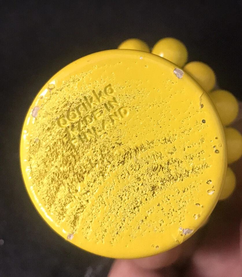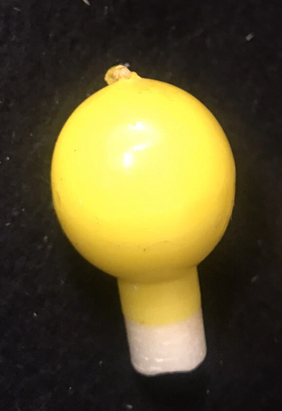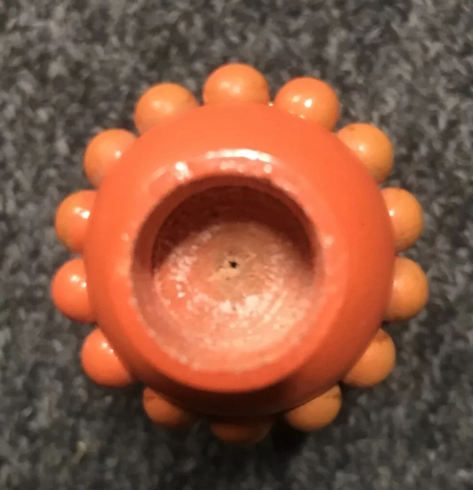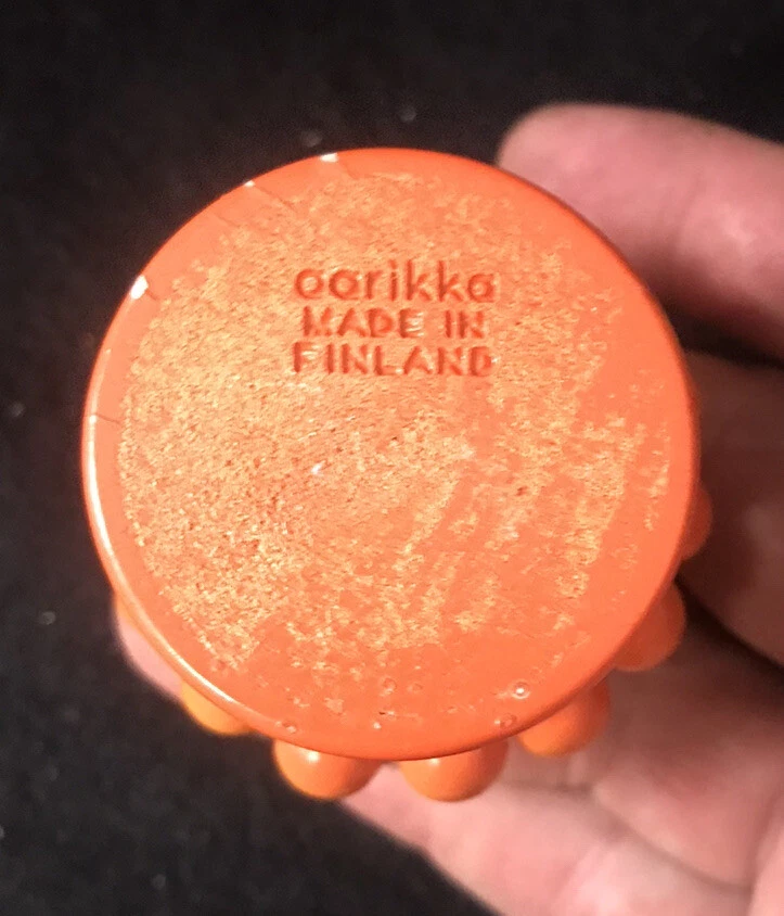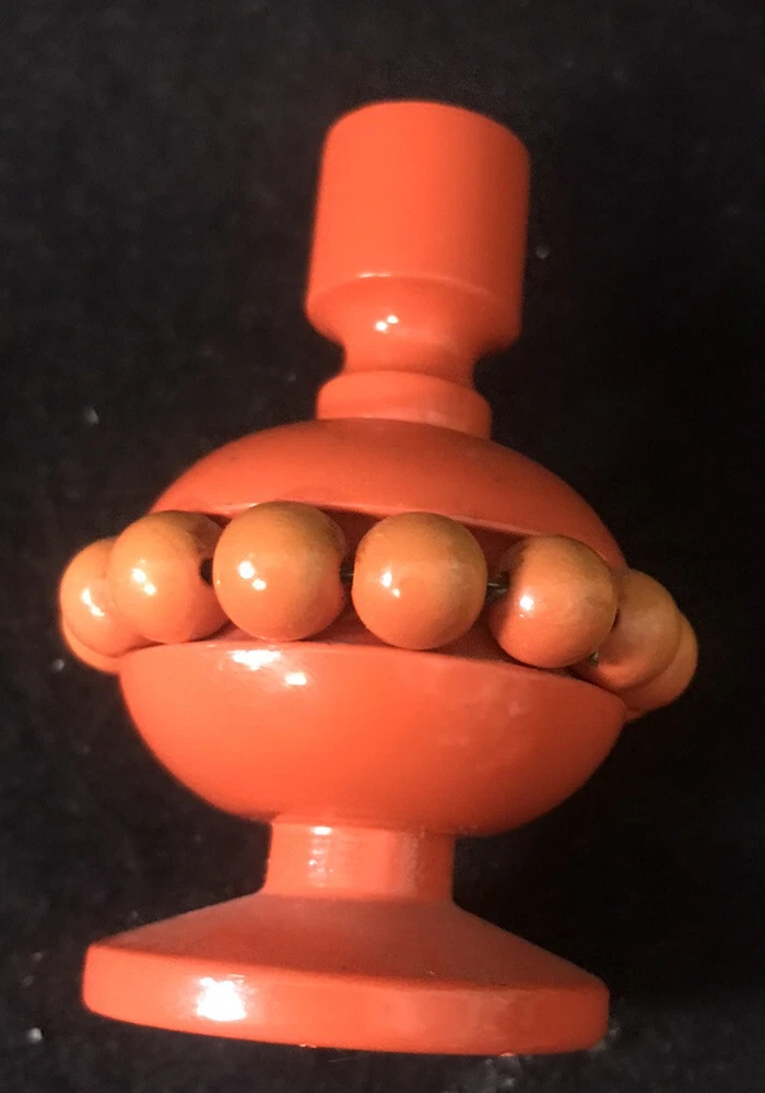 Pair of vintage yellow and orange Aarikka candle holders with beads from Finland. Two vintage matching candles are included. They measure approximately 3-1/4” tall by 2-1/4” in diameter. ( Without the candles inserted.) Great pair of pop art or Mid Century Modern designed candle holders.