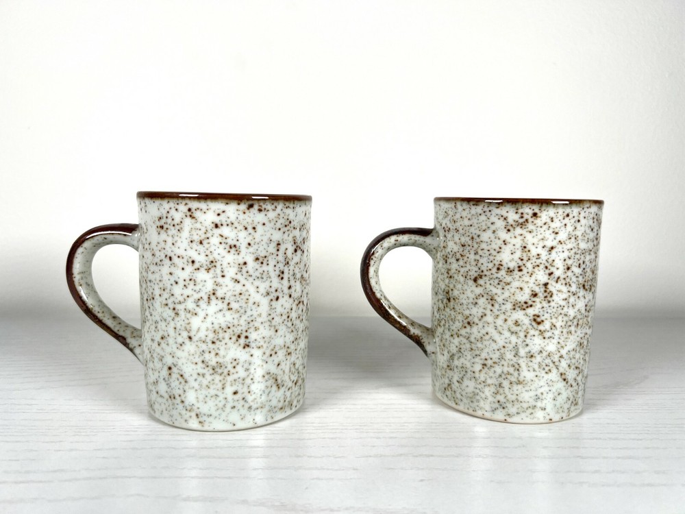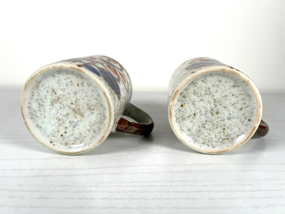 Pair of Mid Century Orange & Blue Floral Ceramic Mugs
