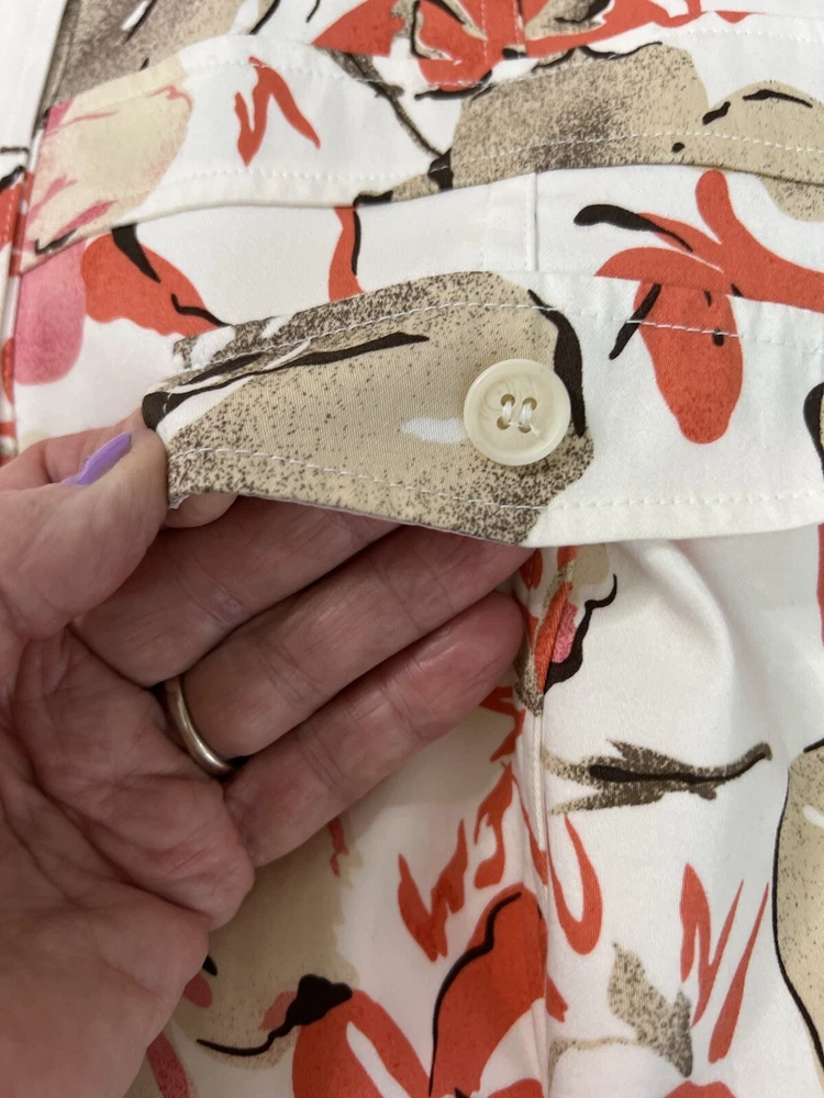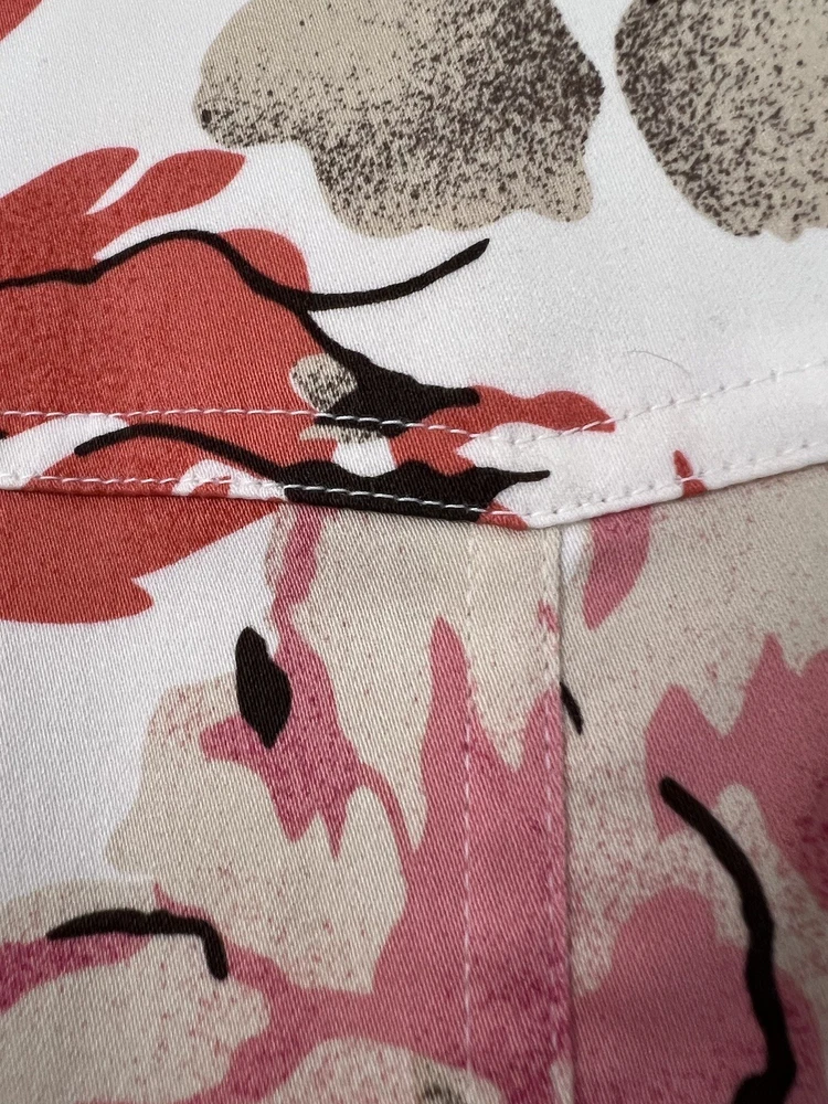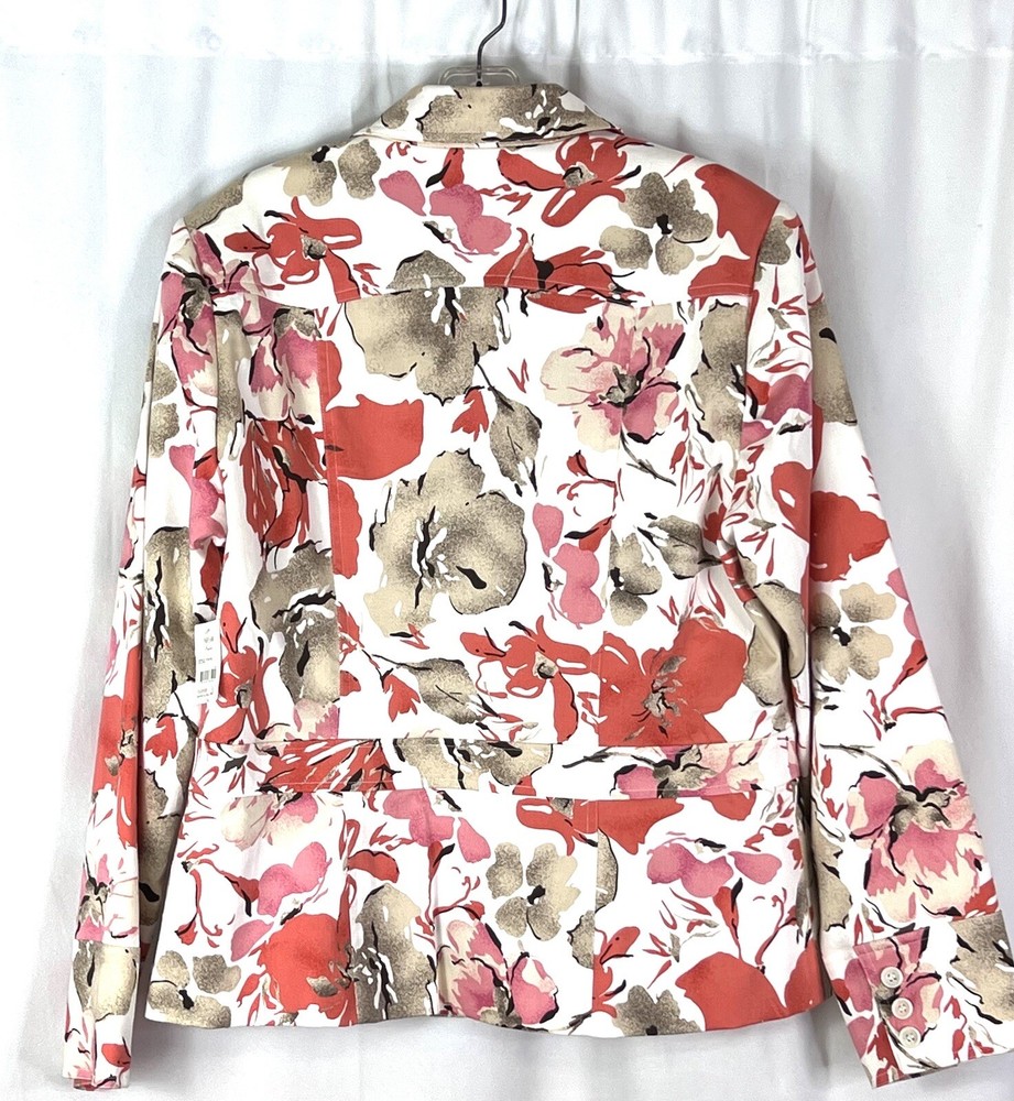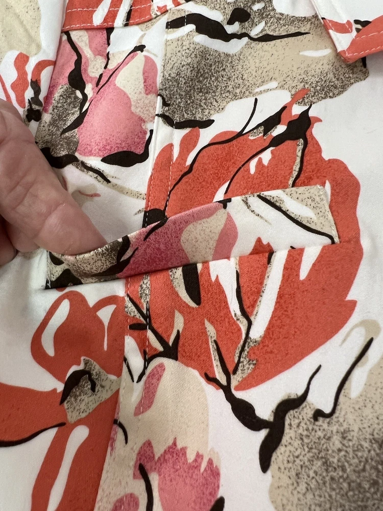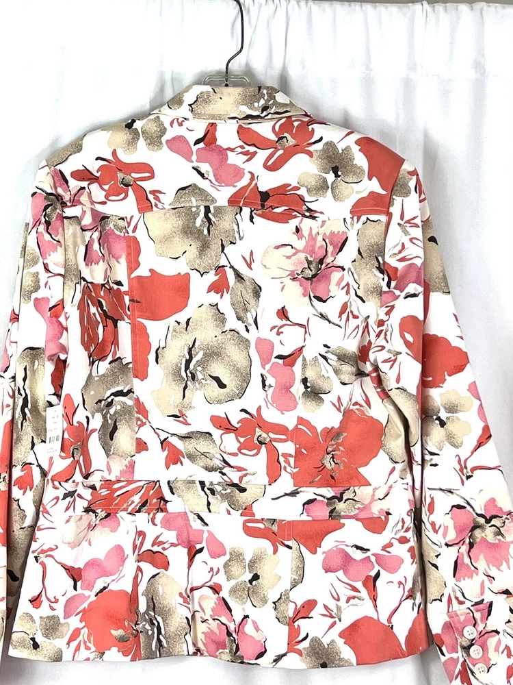 This gorgeous floral jacket is a must-have—lightweight yet lined for year-round wear. The blend of cotton and polyester keeps it breathable, while the elegant top-stitching and functional pockets add both style and convenience. The orange-tan hue is vibrant yet versatile, perfect for dressing up or down. True to size with a flattering regular fit, it’s a chic, effortless addition to any outfit. Love the designer details!