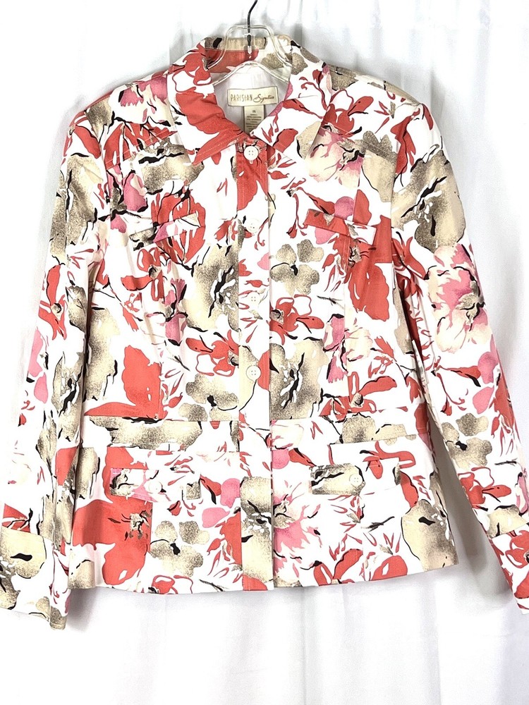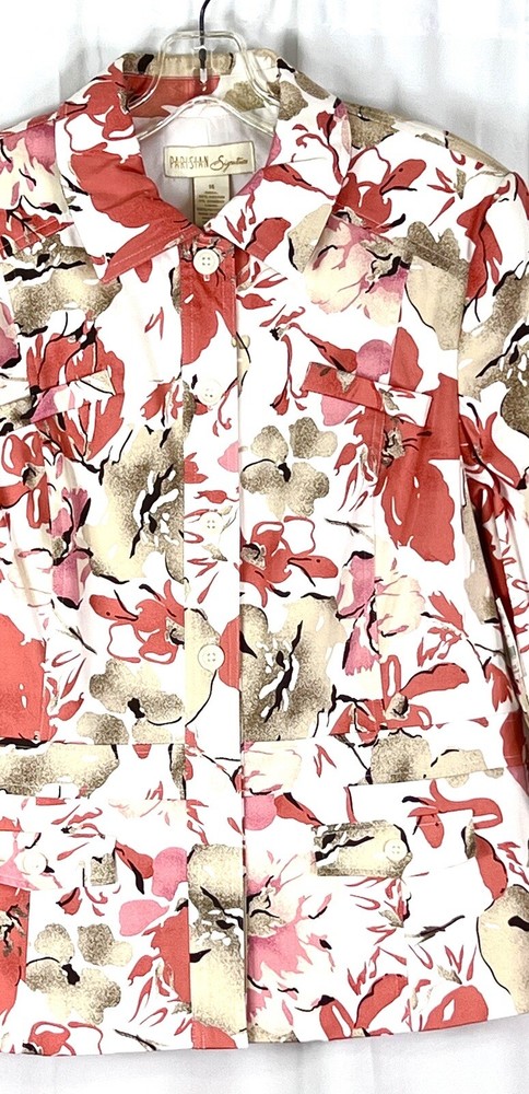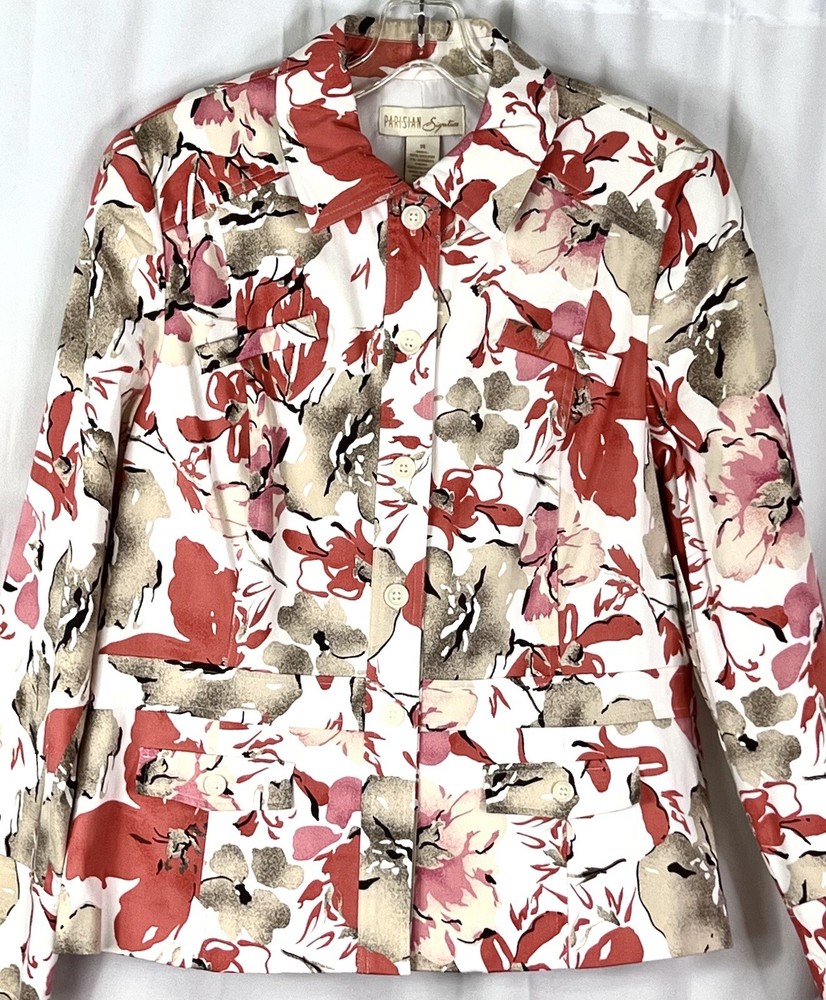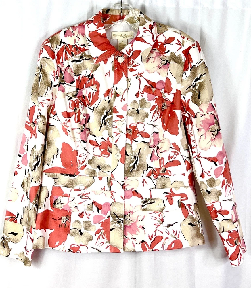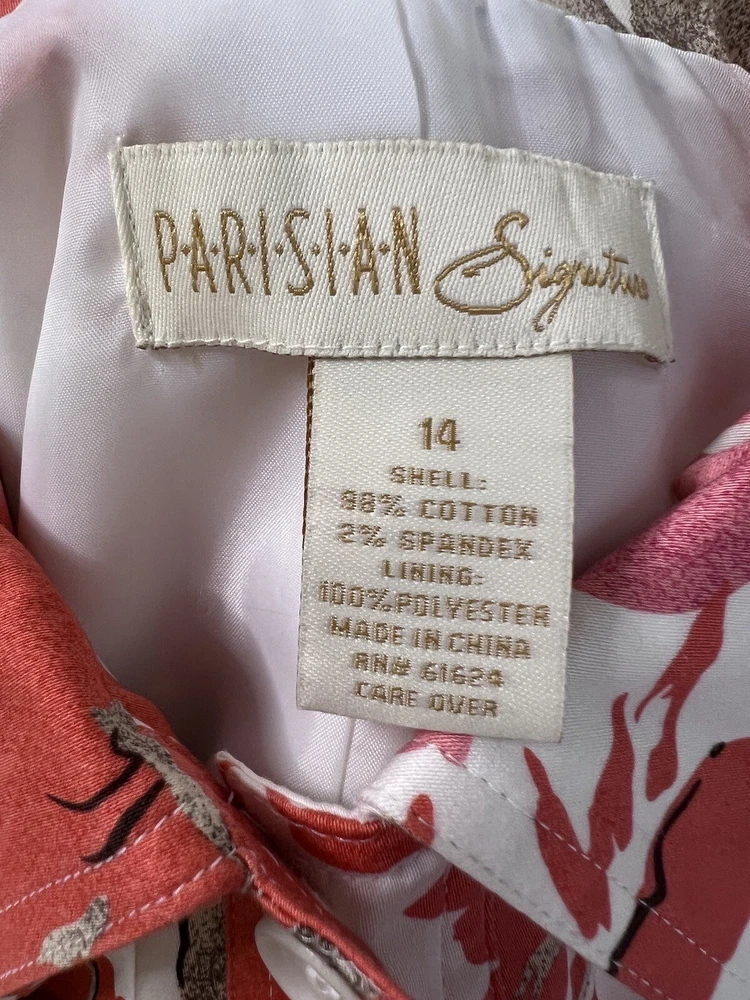 This Parisian Signature jacket is the perfect addition to any wardrobe. Made of a comfortable cotton and polyester blend, it features a button closure and top-stitched accents. The jacket is lined and has a breathable fabric type, making it suitable for all seasons. It also has pockets, adding convenience to its classic style. The mid-length coat is designed for women and comes in a beautiful orange tans color. The jacket is dry clean only and is a size 14, with a regular fit. The Parisian Signature model is a designer piece that is perfect for travel, party, cocktail, or casual occasions.