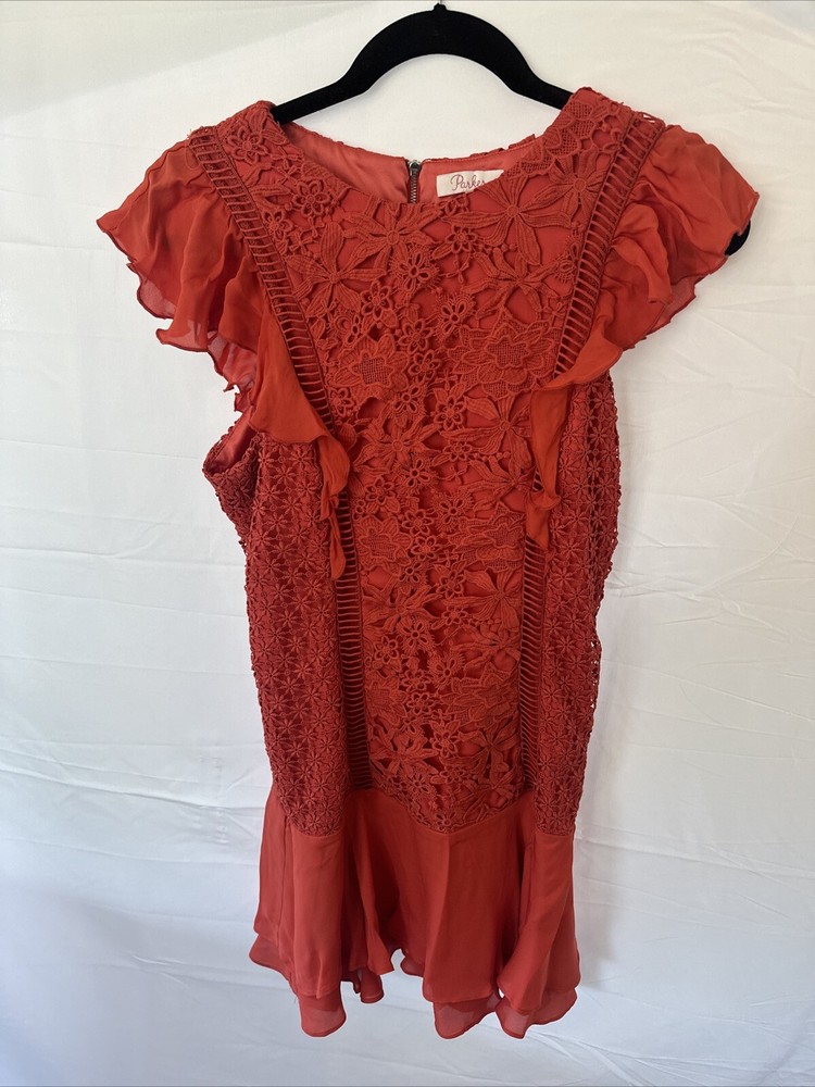This stunning Parker dress in a vibrant orange-red color is the perfect addition to any woman's wardrobe. The fit and flare style is flattering and feminine, while the knee-length cut adds a touch of sophistication. The dress is designed for women in size 4 and is made with high-quality materials to ensure long-lasting wear. The brand name, Parker, is synonymous with style and quality, making this dress a must-have for any fashion-conscious woman. The dress is perfect for a variety of occasions, from a night out with friends to a formal event. Add this beautiful dress to your collection today and make a statement wherever you go!