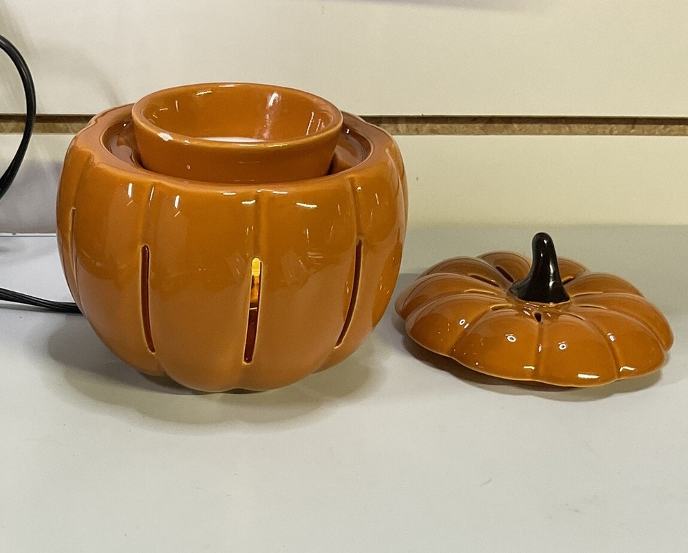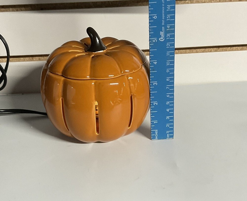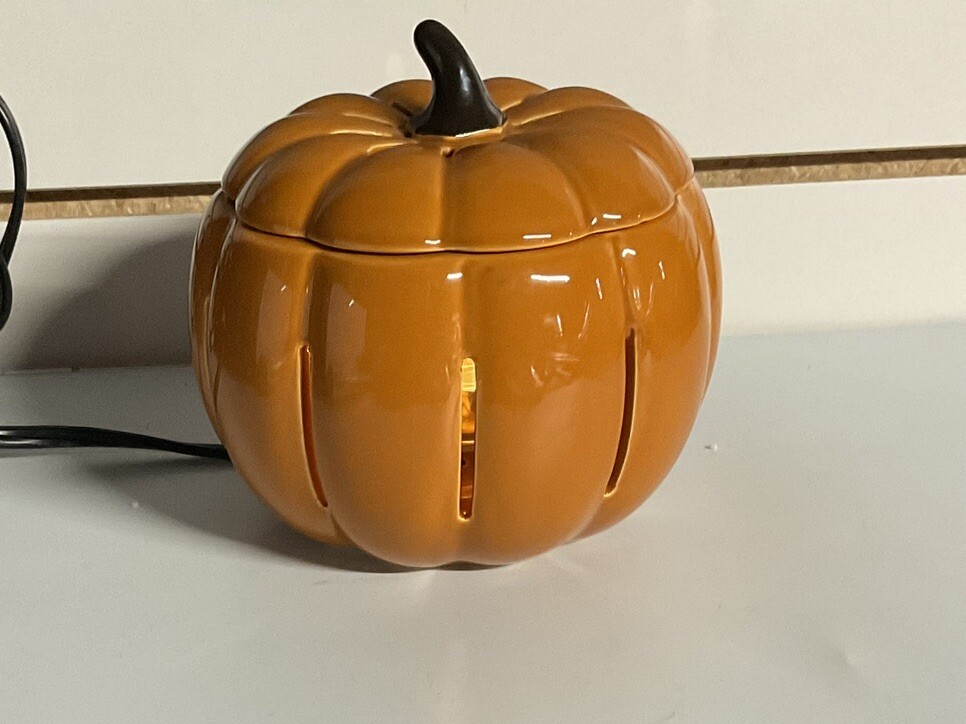 Partylite Scent Glow Warmer Pumpkin Glow P91095 Halloween Fall Candle melt warmer. Excellent used condition works great. No chips cracks or damage of any kind. Comes in original box with styrofoam and instructions.
