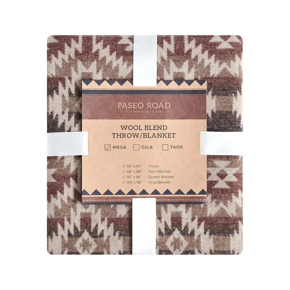 Paseo Road by HiEnd Accents Mesa Wool Blend Western Throw Blanket, 110x96 inch King, Brown Geometric Print, Aztec Tribal Navajo Pattern Southwestern Rustic Soft Cozy Blanket for Couch, Sofa, Bed Product Details Size: King Color: Mesa Brown Brand: H HIEND ACCENTS MPN: TR1934-KG-OC UPC: 840118819190 EAN: 0840118819190 Material: Polyester, Wool Color: Mesa Brown Brand: H HIEND ACCENTS Special Feature: Lightweight Style: Western Material: Polyester, Wool Color: Mesa Brown Brand: H HIEND ACCENTS Special Feature: Lightweight Style: Western Blanket Form: Throw Blanket Age Range (Description): Adult Product Dimensions: 96"L x 110"W Theme: Geometric Pattern: Yarn Dye Recommended Uses For Product: Reading, Napping, Travel Seasons: All Fill Material: Polyester, Wool Blend Product Care Instructions: Dry Clean Only Size: King Fabric Type: 85% Polyester, 15% Wool Unit Count: 1.0 Count Number of Items: 1 Included Components: 1 Blanket Fabric Warmth Description: Lightweight Sport: Camping Model Name: Wool Blend UPC: 840118819190 Manufacturer: HiEnd Accents Item Weight: 7.09 pounds Country of Origin: China Item model number: TR1934-KG-OC Refill: Polyester, Wool Blend Batteries required: No 85% Polyester, 15% Wool THROW BLANKET (1) SUPER KING THROW (110"x96"). ORIGINAL DESIGNS: We create bedding and home decor that pay homage to the history, heritage, and endless beauty of the rustic world. Our pieces are developed in Dallas and crafted by experts around the world. QUALITY IN EVERY STITCH: Weve got high standards for quality, comfort, and style. From duvet covers to comforter sets, lightweight quilts, bedspreads, sheets, blankets, throws, and throw pillows, our pieces are designed to be as durable as they are cozy and luxurious. HONEST PRICES: We work hard to guarantee fair prices for both our customers and craftsmen. From traditional styles to modern rustic renditions, we're proud to be known as a leading designer of Western, Southwestern, Aztec, lodge and cabin bedding sets for all seasons. EASY CARE: Dry clean only. Ashes to ashes, dust to dust. Mesa speaks of our origin and destination through ancestral geometric patterns in yarn-dyed, cool earth tones. This Southwestern-inspired throw is woven from our easy-care wool blend, which lends ample comfort and a familiar warmth that pulls you in, time and time again. Complement with other bedding and accessories from our Mesa Collection for a coordinated Western, Southwestern, or lodge home loo Payment Back to Top We accept Paypal and All Major Credit Cards. Shipping & Handling Back to Top Item will be shipped FREE standard shipping in 1 business day after payment is received. Express Shipping services are available. Tracking number will be provided. Return Policy Back to Top Items can be returned for exchange or full refund within 30 days from the date you receive your merchandise. Please contact us before starting a return request, so we can resolve any issues and provide free returns if needed. Return shipping is the responsibility of buyer unless the return is a result of our mistake (i.e., your receive the wrong item). Contact Us Back to Top If you have any questions please contact us. We will respond within 1 business day or less.