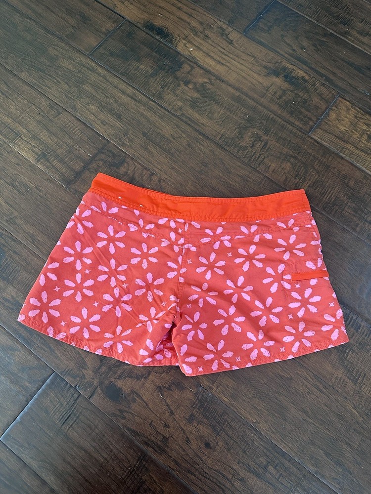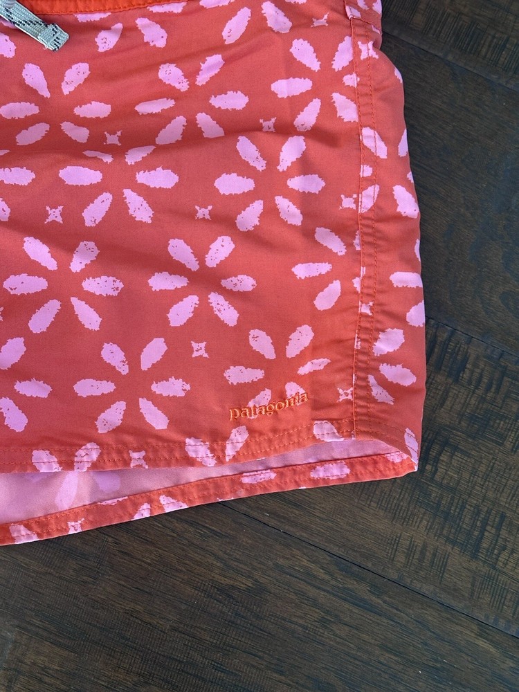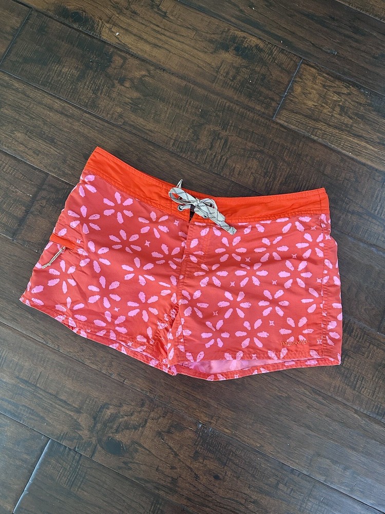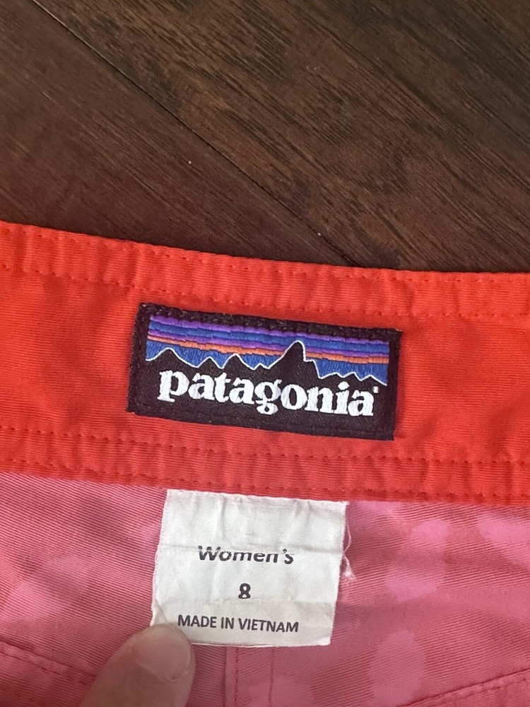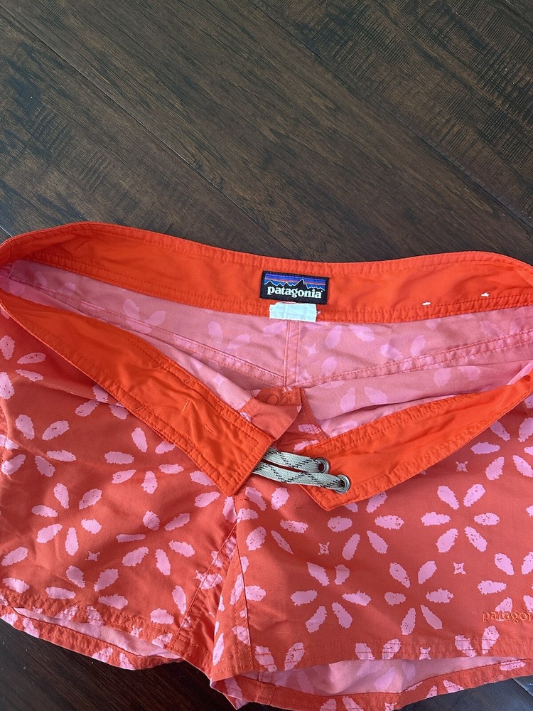 These Patagonia shorts are perfect for any outdoor activity. With a drawstring closure and flat front, they provide both comfort and style. The orange color and logo accents add a pop of color to any outfit. Made from waterproof nylon and designed with a regular fit, these shorts are ideal for walking, hiking, and other outdoor activities. They have a 4-inch inseam and are available in size 8 with a waist size of 33 inches. Whether you're traveling, using activewear, or just going about your day, these shorts are a great addition to any wardrobe.