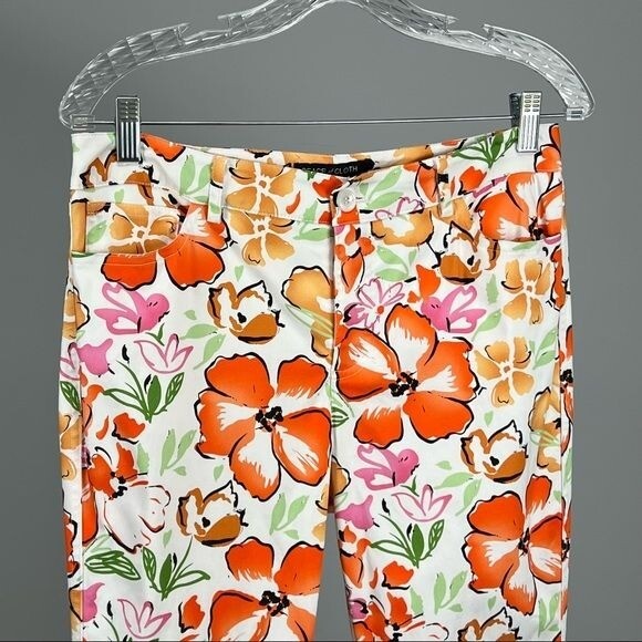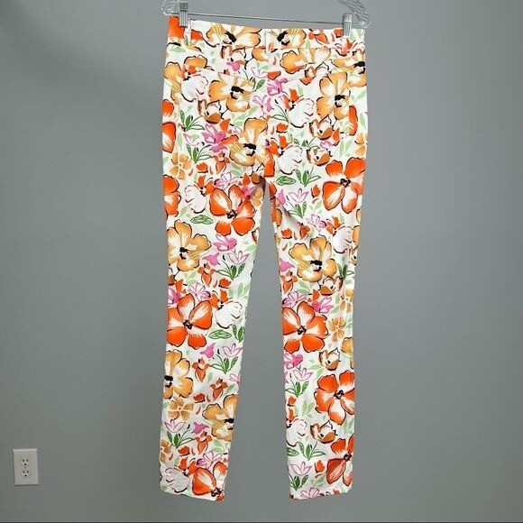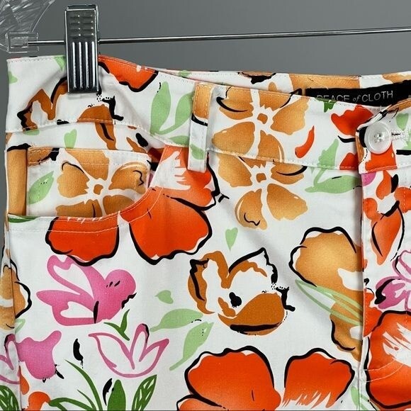 Peace of Cloth orange multicolor floral slim pants jeans, size 6 A cheery and bright Multi Floral for a refreshing pop of sunshine! - orange, brown, green, white floral pattern - front zip and button closure - 5 pocket style - belt loops - style 138P119 MATERIALS: cotton, spandex SIZE: 6 CONDITION: Very good preowned condition MEASUREMENTS: Approx measurements (flat) Inseam 29.5” Rise 9.25” Waist 15.25” STYLE PROFILE: Professional office business casual workwear dressy date night weekend evening lunch brunch floral colorful spring summer