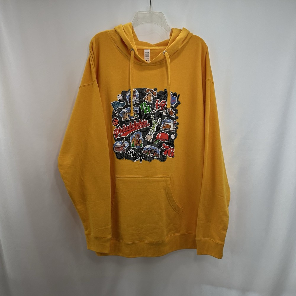 Absolutely love this hoodie! The vibrant orange color and bold Philly graphic make it a standout piece. Super comfy with its fleece lining and relaxed fit—perfect for casual wear or showing off city pride. The mid pocket is a nice touch, and the quality feels great. Works year-round, and the 3XL size fits just right. A must-have for any Philly fan!