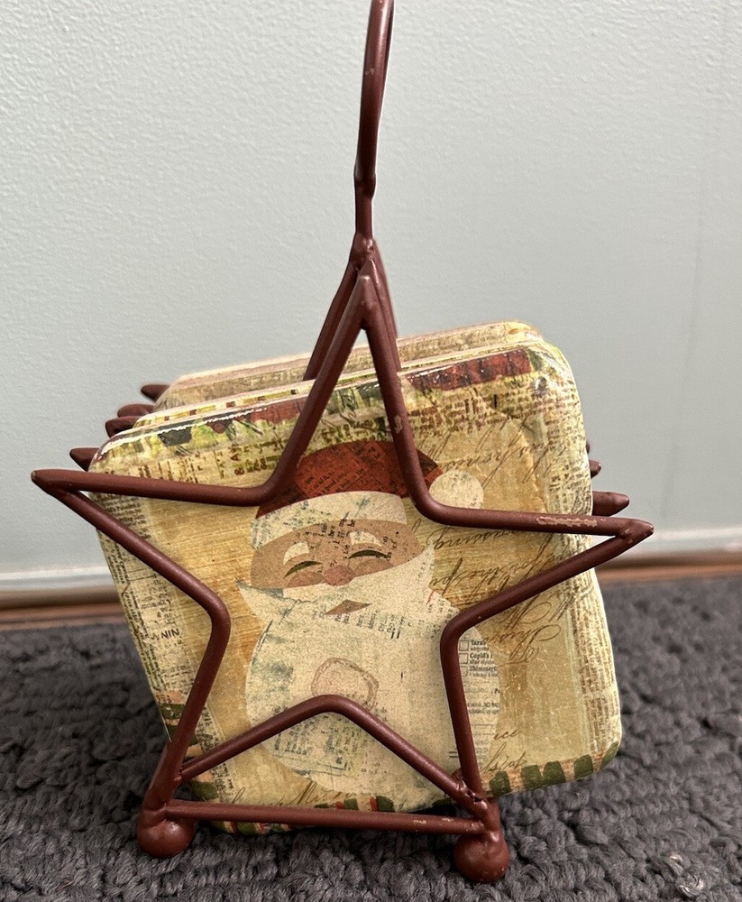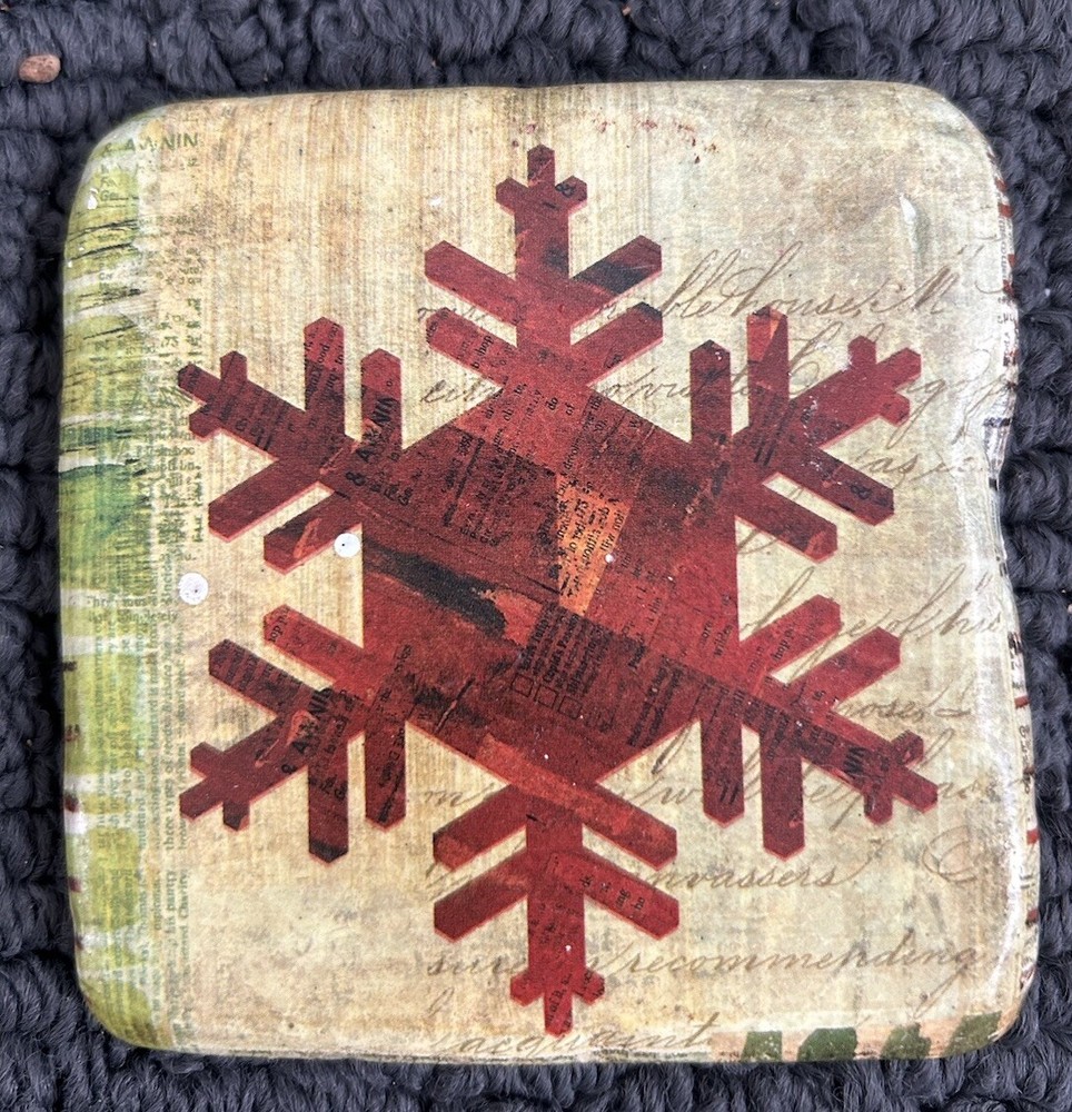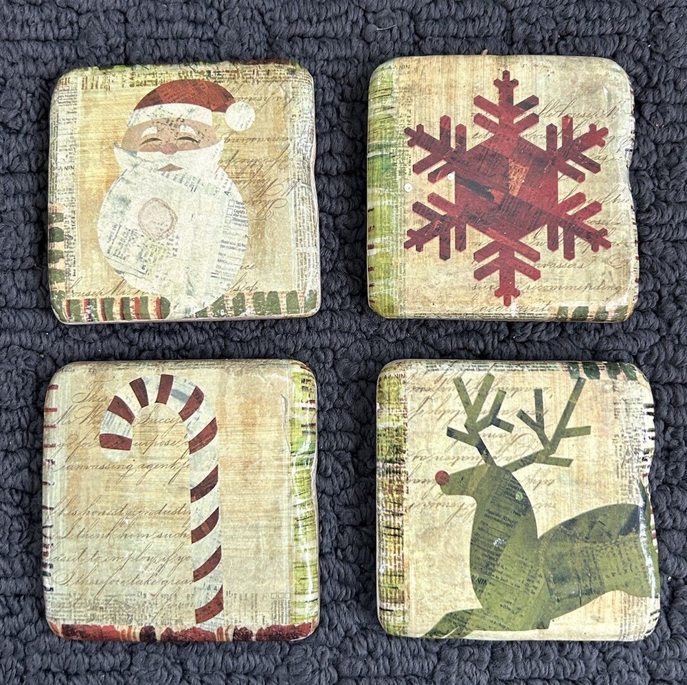 Enhance your Christmas table décor with these festive stone coasters from Phoenix Creative Co. The set includes cork backing for protection and a star holder for easy storage. The vibrant multicolor design features holiday-themed accents that will appeal to everyone, from kids to adults. Crafted with high-quality stone and metal materials, these 3.5" x 3.5" coasters are built to last and protect your furniture from moisture and scratches. Perfect for Christmas occasions, these coasters make a thoughtful gift for your friends and family. Add a touch of elegance to your home with Phoenix Creative Co's Stone Christmas Coasters.