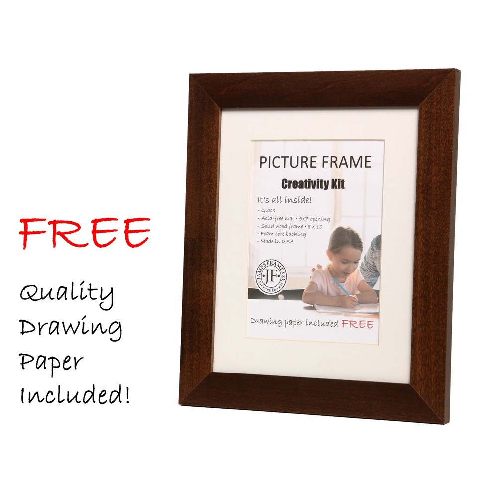 Great gift for the beginning artist! Complete Picture Framing Kit includes: -Glass -Pre-cut Mat (5x7" opening) -Foam Core Backing -High Quality Solid Wood Frame (8x10") -100% MADE IN USA -FREE Drawing Paper included! Hangs vertical or horizontal with pre-drilled holes.