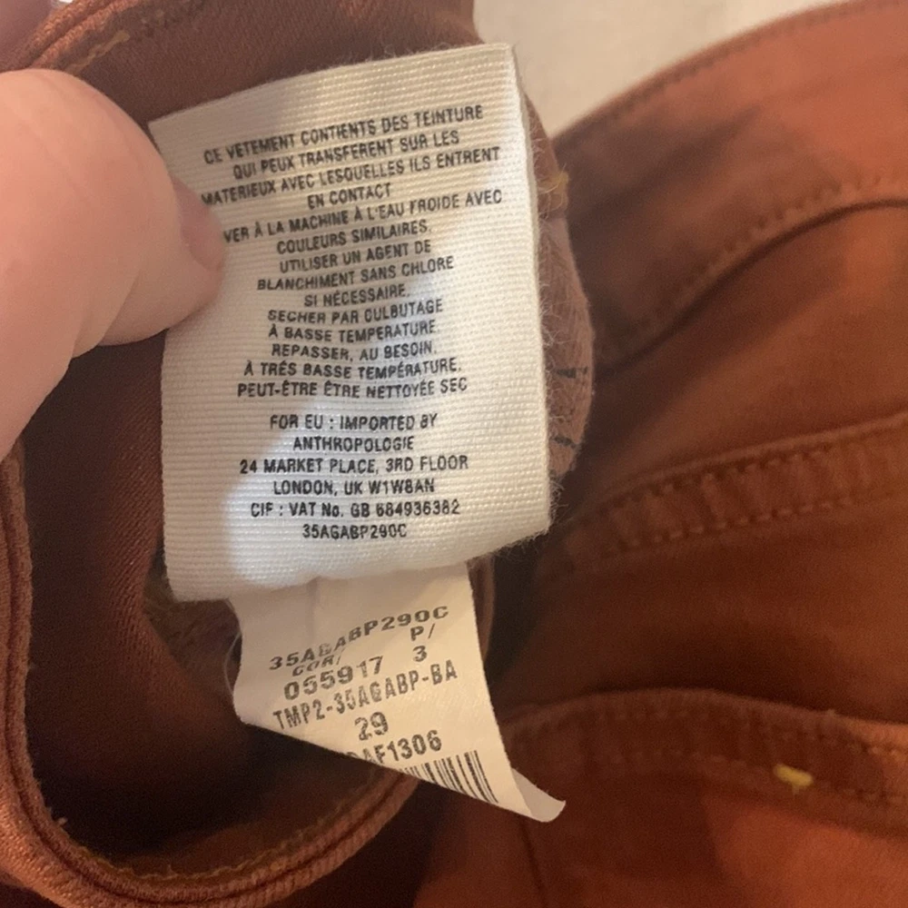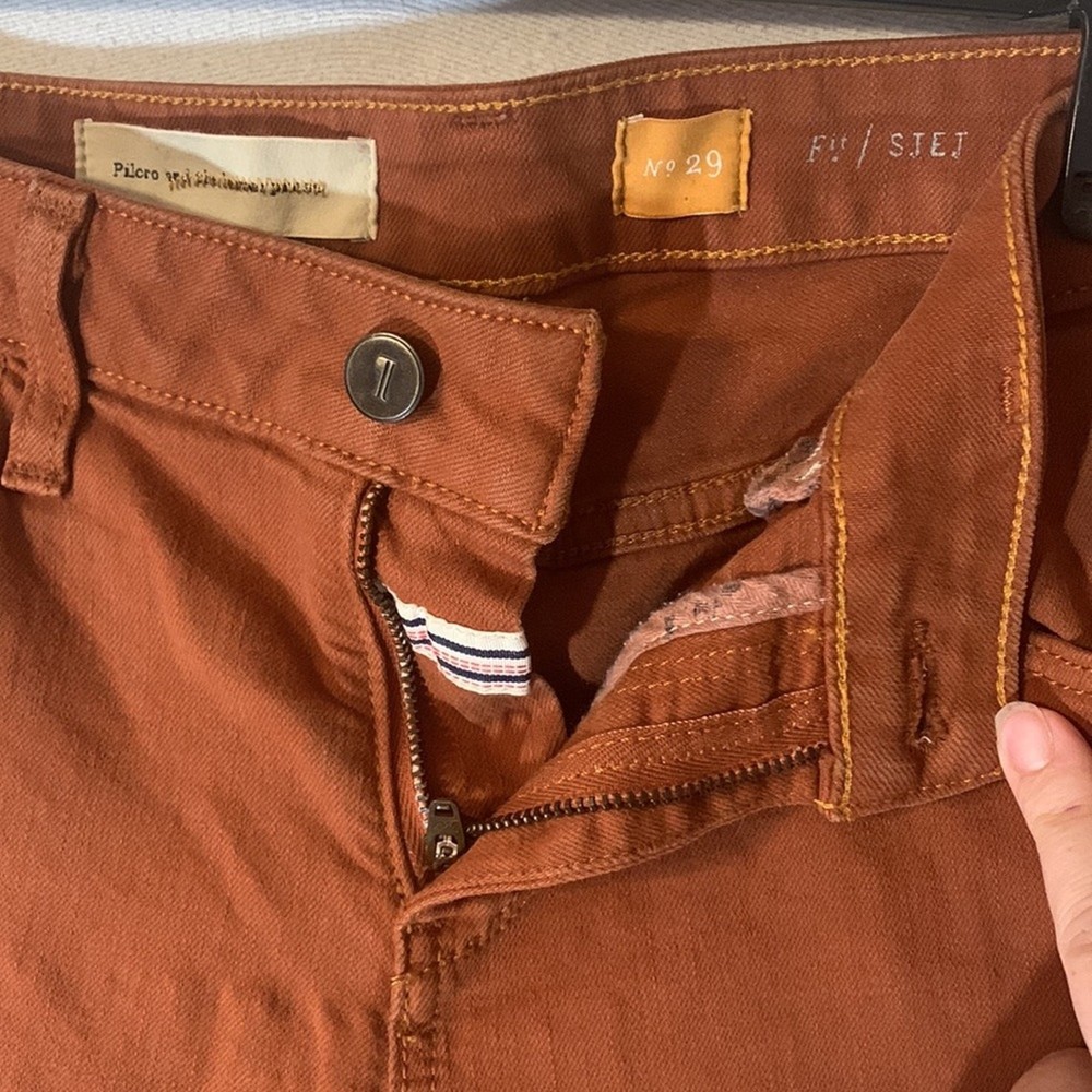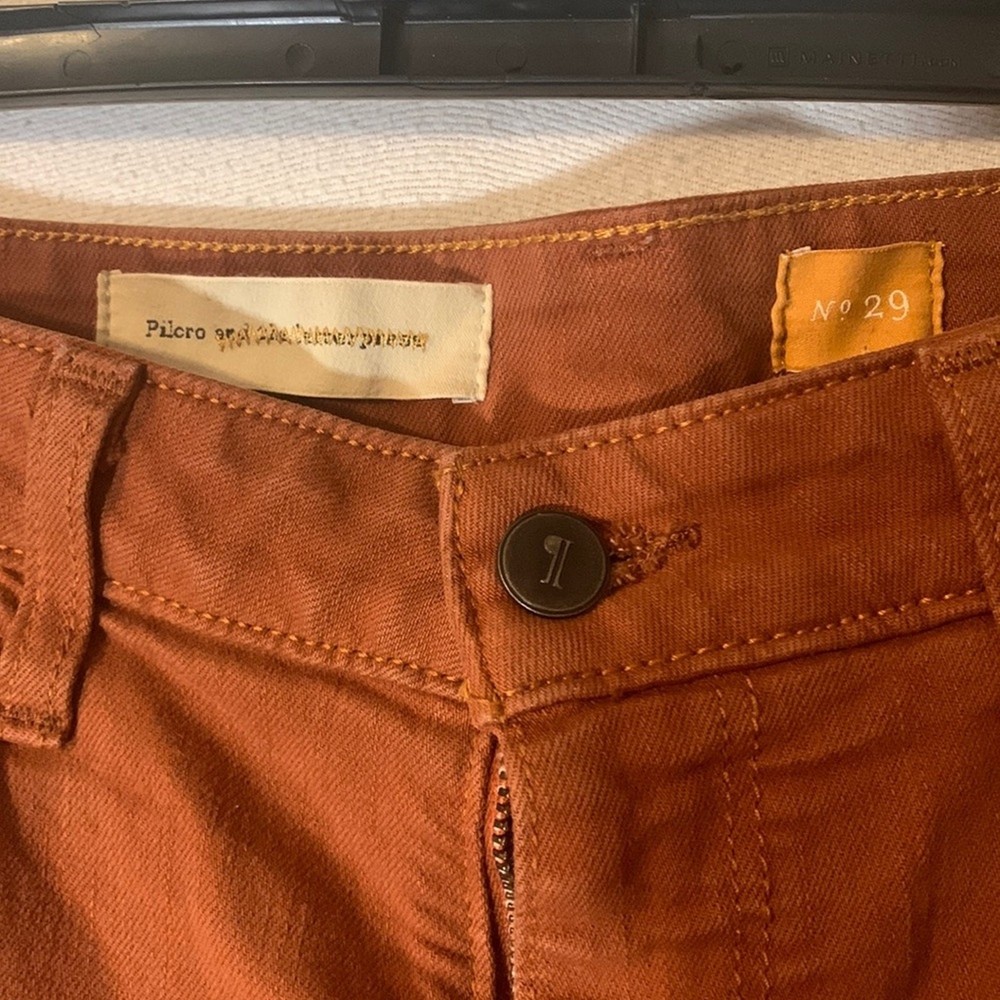 <![CDATA[<div>Pilcro and the letterpress rust stet jeans Womens size 29 gently used condition mid rise skinny fit five pockets zip and button closure P embossed on buttons measurements taken flat waist 15.5 inches rise 9.5 inches inseam 30 inches