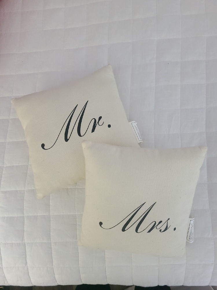 Pillows Wedding Mr & Mrs Bride Groom Gift. Measures 6" × 6"...