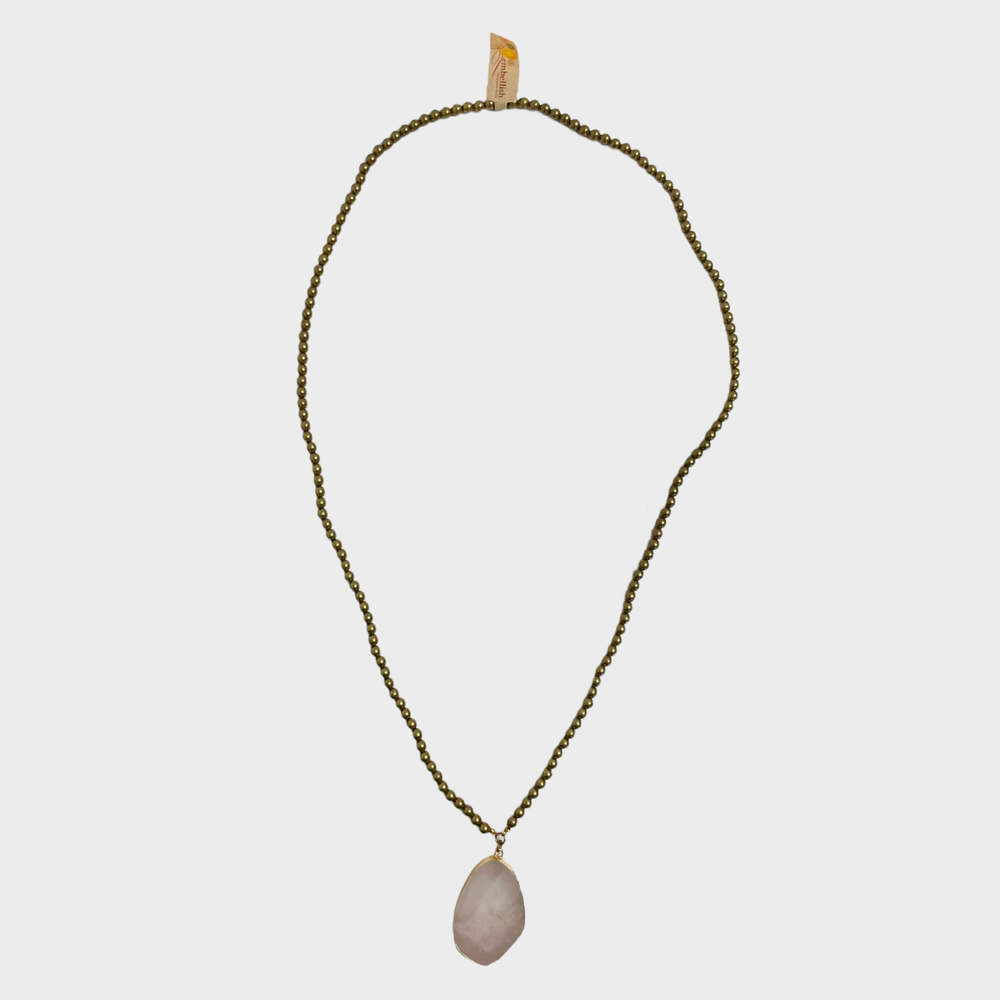 Absolutely love this necklace! The pink agate slice is stunning with its natural patterns, and the gold rim adds a touch of elegance. The beaded chain is delicate yet durable, making it perfect for everyday wear or special occasions. It’s lightweight, comfortable, and gets so many compliments. A beautiful, unique piece that feels high-quality and worth every penny!