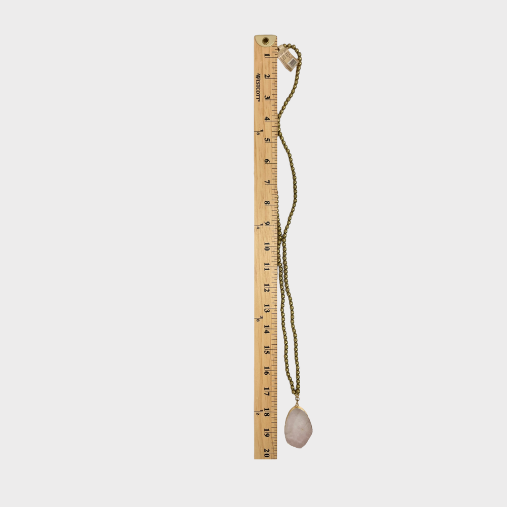 Pink Agate Slice Pendant Gold Rim Beaded Necklace Creative Co-Op...