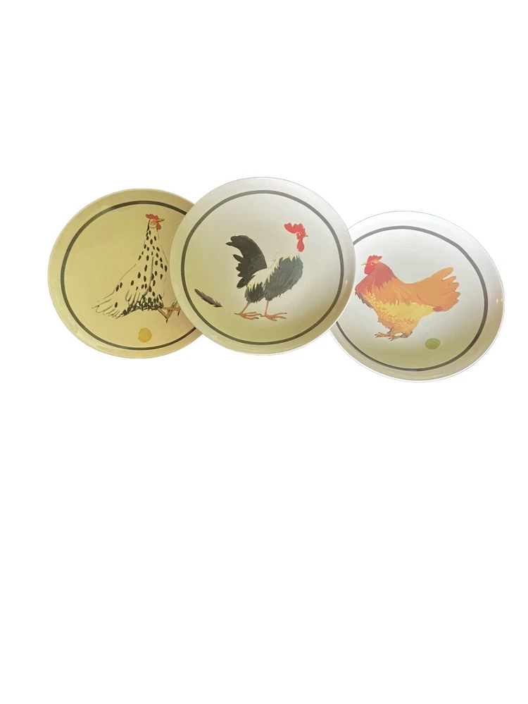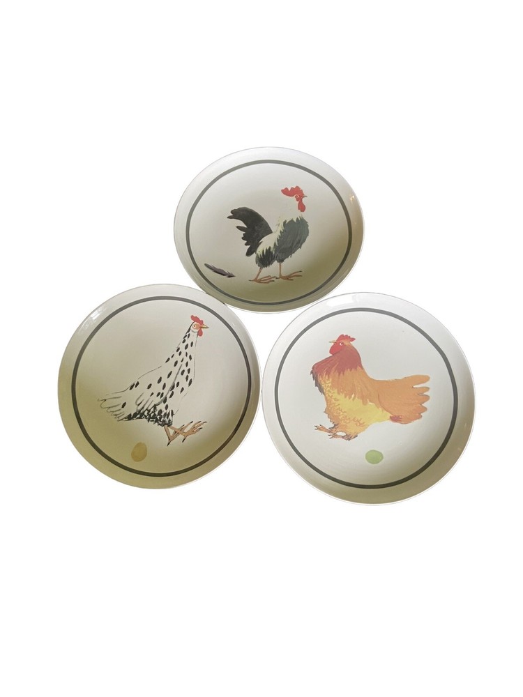 3 Jessica Allen 8 inch plates featuring a Rooster &Two Hens Adorable