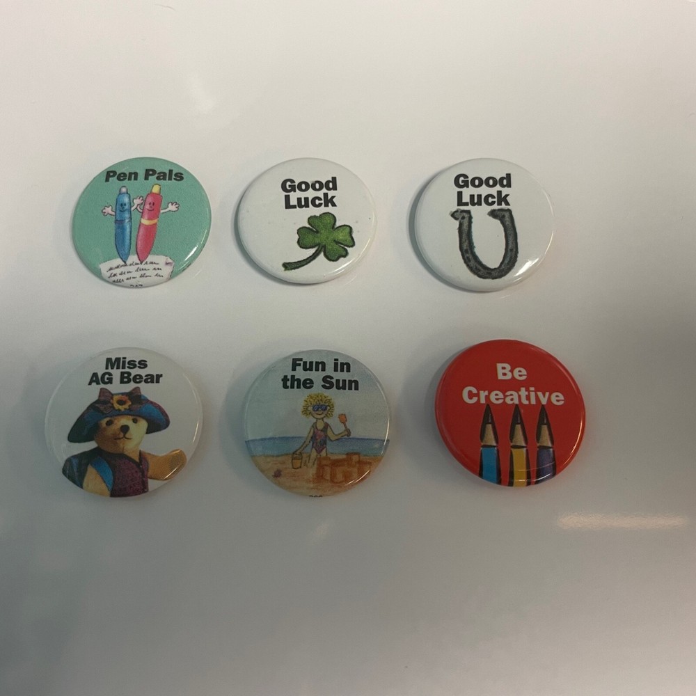 This lot of 6 vintage Grin Pins from Pleasant Company's American Girl line features fun sayings. Each pin is in good condition, ready to add some personality to your collection or outfit. The pins are perfect for fans of American Girl dolls. Add these unique pins to your collection today! Includes a pin with Pen pals, Good Luck [Clover], Good Luck [Horseshoe], Miss AG Bear, Fun in the Sun, and Be Creative. I have other lots of grin pins available in my shop, bundle for a shipping discount! ***Thank you for checking out my listing!*** **I ship from a SMOKE-FREE, Dog-Friendly home! **Please reach out with any questions. I am happy to provide measurements if not already included in the listing! **Feel free to check out my other listings! I offer free shipping over $65 and combined shipping discounts if you add multiple items to your cart! { Note – If an item is listed above $65 and an offer below $65 is accepted, you will be charged for shipping!}