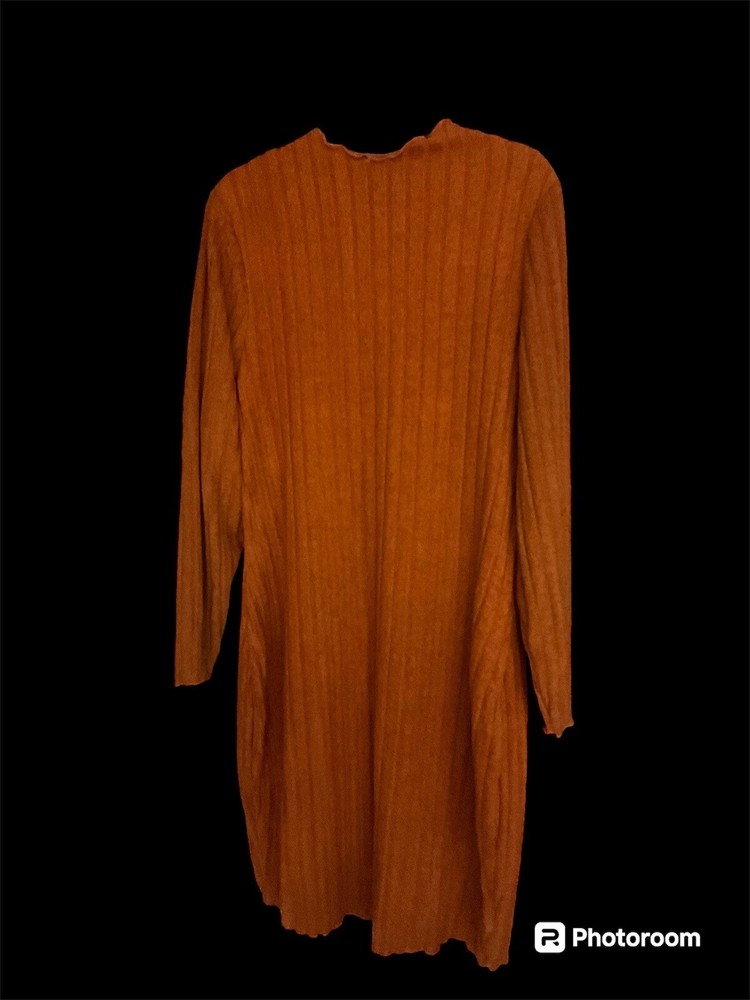 Add elegance to your wardrobe with this stunning orange midi dress with long sleeves. The dress is designed to flatter your curves with a bodycon style and a ribbed pattern, making it perfect for any occasion, from parties to formal events. The high neckline and pullover closure give it a chic and sophisticated look, while the plus size 1X ensures a comfortable and flattering fit. The dress is suitable for all seasons, whether it's fall, winter, or spring, and it comes in a beautiful black color that is timeless and versatile. Get ready to turn heads with this must-have addition to your collection.