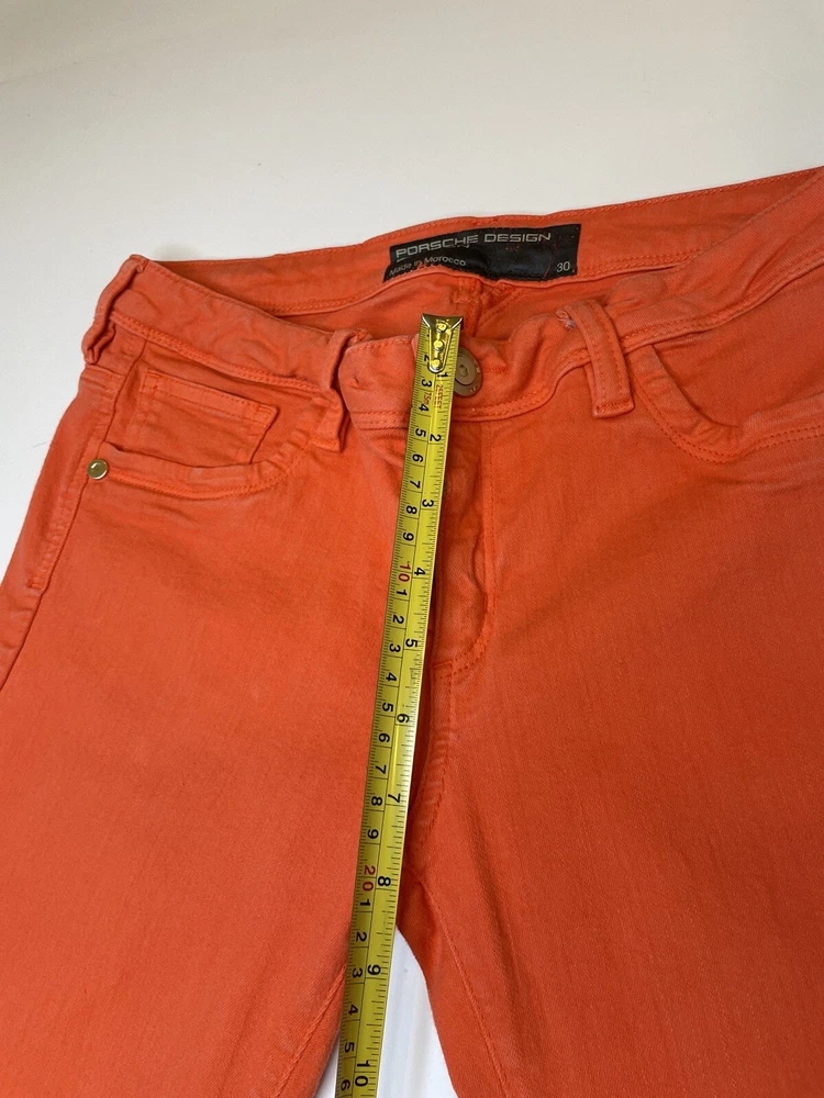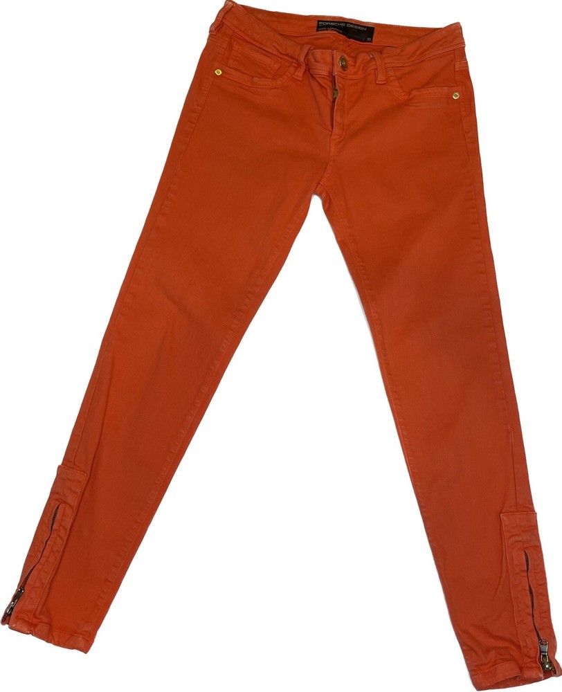 Porsche Design Women’s Jeans Orange Skinny Mid Rise Ankle Slim 30x26 Waist 28-30” Front rise 8” Inseam 26” Leg opening 9” Cotton, polyester, lycra Great condition