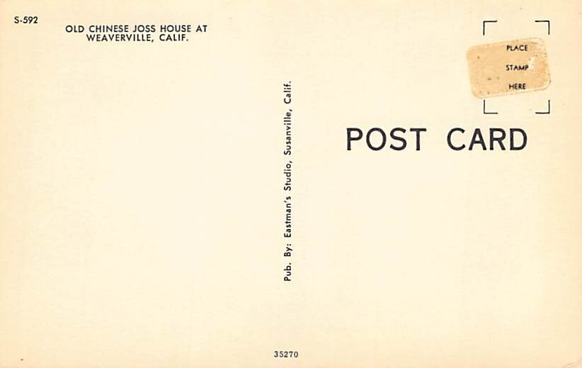 Chinese Joss House Weaverville California Postcard Unposted Vintage