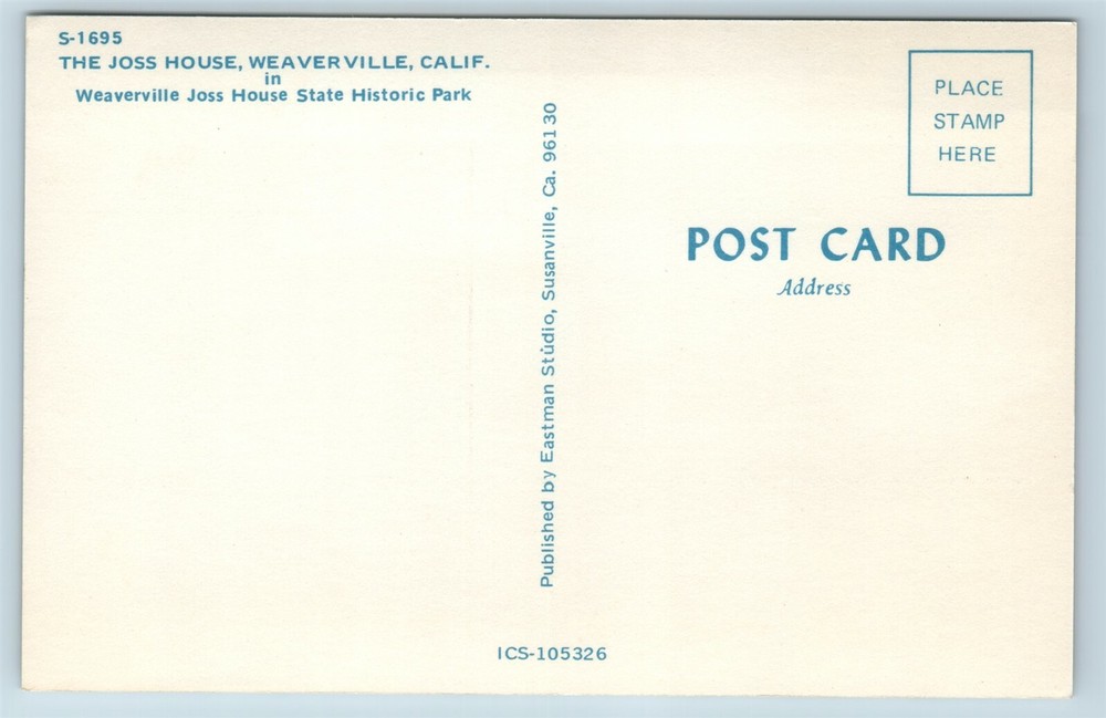 Postcard CA Weaverville California The Joss House AF2 - see pictures for condition and details, use the zoom and please ask questions I take high quality photos and scans of my items. Use the ebay picture zoom feature to see the full detail and condition of the card. Please pay via paypal within 5 days. Thank you. Powered by SixBit's eCommerce Solution Shipping Information: Please Read: Postcards Under $20 : If you choose "FREE" shipping, the postcard will be sent in a thin cardboard mailer using eBay Standard Envelope (ESE) tracking. Note that ESE tracking only monitors movement between processing centers and does not provide mailbox-to-mailbox tracking. A "Delivered" scan indicates that the postcard has reached the final sorting center before your local post office; it may take a few extra days, to a week, to reach your mailbox. Expect potential delays of up to 3 weeks within the U.S. due to USPS?s poor performance; international delivery ($2.50) may take 4-5 weeks. Free ESE Shipping Limitations : The postcard cannot be marked "Do Not Bend" or sandwiched between two pieces of cardboard, as these options disqualify it from ESE shipping. Upgraded Shipping - Ground Advantage : You may choose to pay for Ground Advantage shipping for added protection, which includes a plastic top-loader and a sturdy, thick cardboard mailer and mailbox to mailbox USPS tracking. If you wish to upgrade from ESE to Ground Advantage shipping after your purchase, please contact me immediately, and I?ll provide a link to an eBay listing for the additional shipping cost. Postcards Over $20 : All postcards valued over $20 (before or after accepted offers) will only be shipped via Ground Advantage at the buyer's cost. Please feel free to reach out if you have any questions or need further assistance!