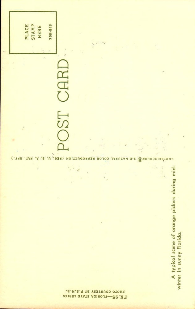 Postcard Typical Scene of Orange Pickers Mid Winter Florida Chrome Unused Description Check out the scans! Payment Payment due within 7 days of auction close. Paypal only. Shipping All items will be shipped securely, usually within 24 hours. Large items may take longer. Combined shipping is available. A combined invoice will be sent at auction close. Please wait until invoice has bee received before making payment.