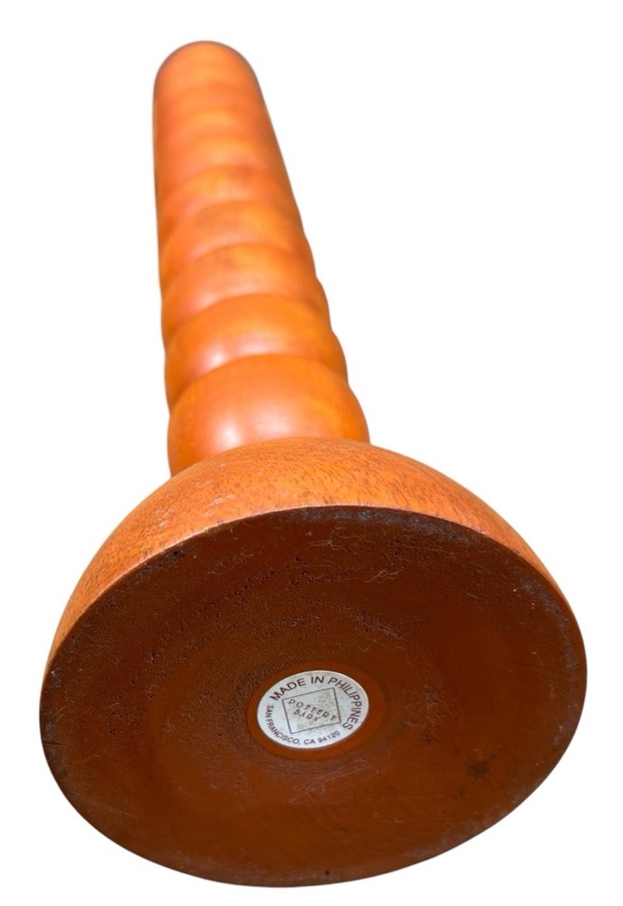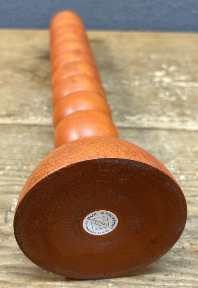 Add a touch of mid-century modern style to your home decor with this elegant Pottery Barn candle holder. Made of high-quality wood, this candle holder features a brushed finish and a 3D effect that enhances its visual appeal. Its large size and orange color make it a perfect addition to any room, while its suitability for furniture and easy care instructions make it a practical choice for everyday use. Suitable for all occasions, this candle holder is perfect for display and decoration purposes. Its unboxed packaging and original design make it a great gift for your loved ones. The Philippines-manufactured candle holder is a collectible item that is sure to add a romantic touch to your home. Excellent condition.