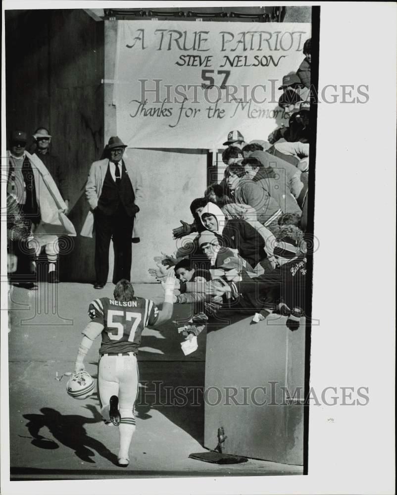 ebay template Note: Please study the images carefully to determine the condition of this vintage photograph, as it may not be in perfect condition. It may contain wrinkles, cracks, and possibly even tears due to its age and how it was handled before it got to us. A scanner may interpret colors and contrast differently than human eyes will, so it is possible that the actual photograph may be slightly darker or lighter in person. This vintage photograph is offered for sale as a collectible item and conveys no transfer of copyright. Press Photo New England Patriots player Steve Nelson, fans in Sullivan Stadium This is an original press photo. Sullivan Stadium fans are on their feet and in good voice prior to the game as they show Steve Nelson how much they've appreciated his 14 years of play. Photo measures 8 x 10inches. Photo is dated --None. PHOTO FRONT PHOTO BACK Historic Images Part Number: afa16801 FAQs Q: Can I just download a digital version instead? A: No, we sell only vintage originals and do not make or distribute any copies, including digital ones. Q: Do you combine shipping and invoices? A: Multiple photos won on the same seller ID combine automatically through the eBay checkout process. If you encounter problems with this, send us a message via eBay messaging and we will send you an invoice. Due to eBay limitations, we cannot combine items won on our different seller IDs for a single shipping charge. Q: How quickly do you ship the items once paid? A: We ship within one business day after your payment clears. If you do not receive an "order shipped" email from us by the close of the second business day from submitting payment, please e-mail us via eBay messaging. Q: How do you make sure my photograph arrives safely? A: We package each order between two cross-corrugated pieces of cardboard to ensure that the package is as difficult to bend as possible. We then wrap each order in a plastic sheet to help protect against moisture. We want you to rest assured that we take every precaution to ensure that the photograph you receive will be in the same condition in your care as it was in ours. Q: Will the "Historic Images" watermark be on my photo when I receive it? A: No. This is a digital watermark we use to protect our images. It is not printed on the photo. Q: What are your office hours? A: eBay for us is a business, and a very fun one to be in! We are open M-F 9 to 5 (CST). Therefore, we do not return e-mails and phone calls over the weekend. We observe the following holidays: New Years Day, Memorial Day, Fourth of July, Labor Day, Thanksgiving and the day after Thanksgiving, Christmas Eve and Christmas Day. Q: Where did all these vintage photos come from? A: These original vintage photographs are from various news service and newspaper photo archives from locations around the country including: Boston, Detroit, Tampa, Chicago, Denver, Seattle, New Orleans, Milwaukee, Portland, Spokane, and more. We do not copy or reproduce any photographs -- every item is a unique vintage piece that was housed in a news archive. Q: Can I use this photograph in my book/blog/website? A: The short answer is no. There is no transfer of copyright for republication or reproduction with these photographs when you purchase them, and only photographs taken before 1923 are currently automatically in the public domain. Permission from the copyright holder, which usually can be identified from the back of each photo, must be sought to republish or reproduce the image for any purpose. Q: Do you relist items (in case I miss an auction ending)? A: Auction items that receive no bids are relisted in our store (historicimages-store on eBay) as a fixed-price item and at a higher price than the starting auction price. Q: Do you leave feedback? A: Yes, we always leave feedback for buyers. Our software monitors when our buyers leave us feedback, then notifies us that we can leave feedback for the buyer. Rest assured, if you leave feedback, we will do the same! Check out our family of eBay IDs: historicimages01 Sports Photos historicimages02 Entertainment Photos historicimages03 Americana Photos historicimages04 International & War Photos historicimages05 Transportation Photos historicimages06 Photos of All Subjects historicimages07 Entertainment Photos historicimages08 Newsworthy Photos historicimages09 Entertainment Photos historicimages10 Sports Photos historicimages-store Our largest fixed-price selection historicimages-gallery Hand-picked photos Saturday night auctions About Us Historic Images was formed in September 2009, with a handful of scanners working out of a basement to digitize newspaper photo archives. We have since moved out of the basement, and we can now archive thousands of photos per day. Our company has worked with magazines and newspapers from Detroit, Boston, Denver, Seattle, Tampa, Chicago, and New Orleans, just to name a few. We are constantly adding to our inventory, and have assembled an archive of millions of photos to date. As our company evolved, we began our eBay business, which brings thousands of fresh auctions per week to the world's largest online auction marketplace. Our custom software systems and team of great employees allow us to efficiently scan and sell large photo archives online. At the very core of our company's DNA is a strong commitment to customer satisfaction and strict integrity for our product. Our promise to you is that we will do everything in our power to provide you a great buying experience. Copyright 2009 - Present, Historic Images, Inc. Sell Smarter with Kyozou. Inventory and Ecommerce Management