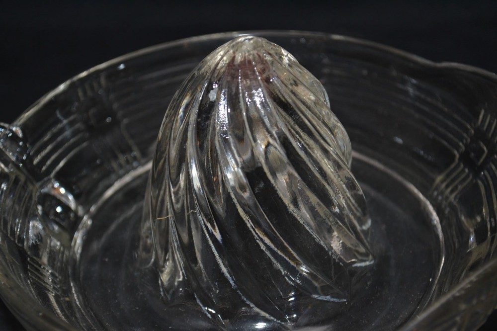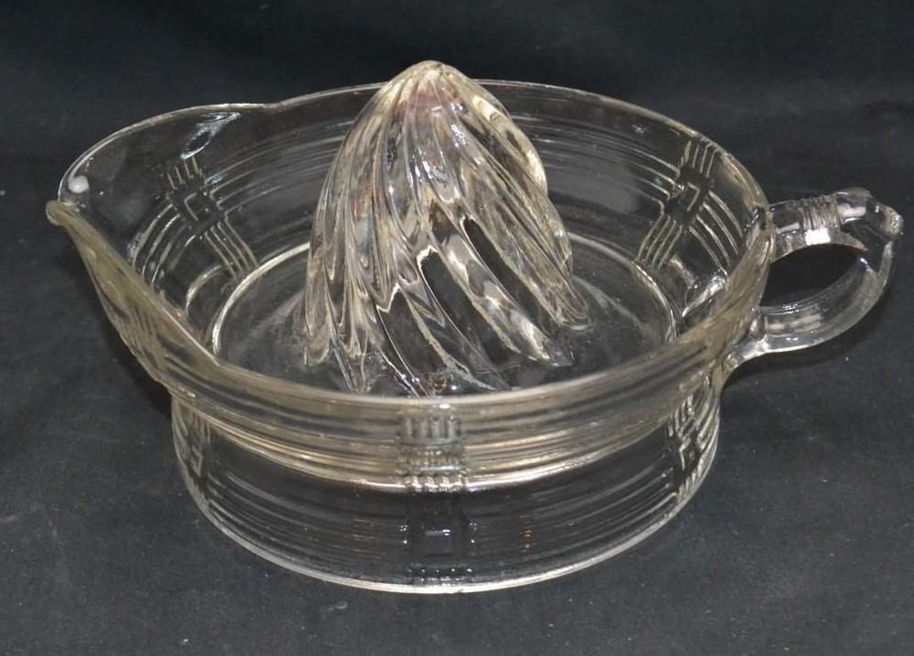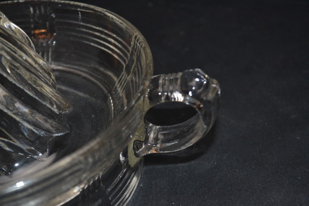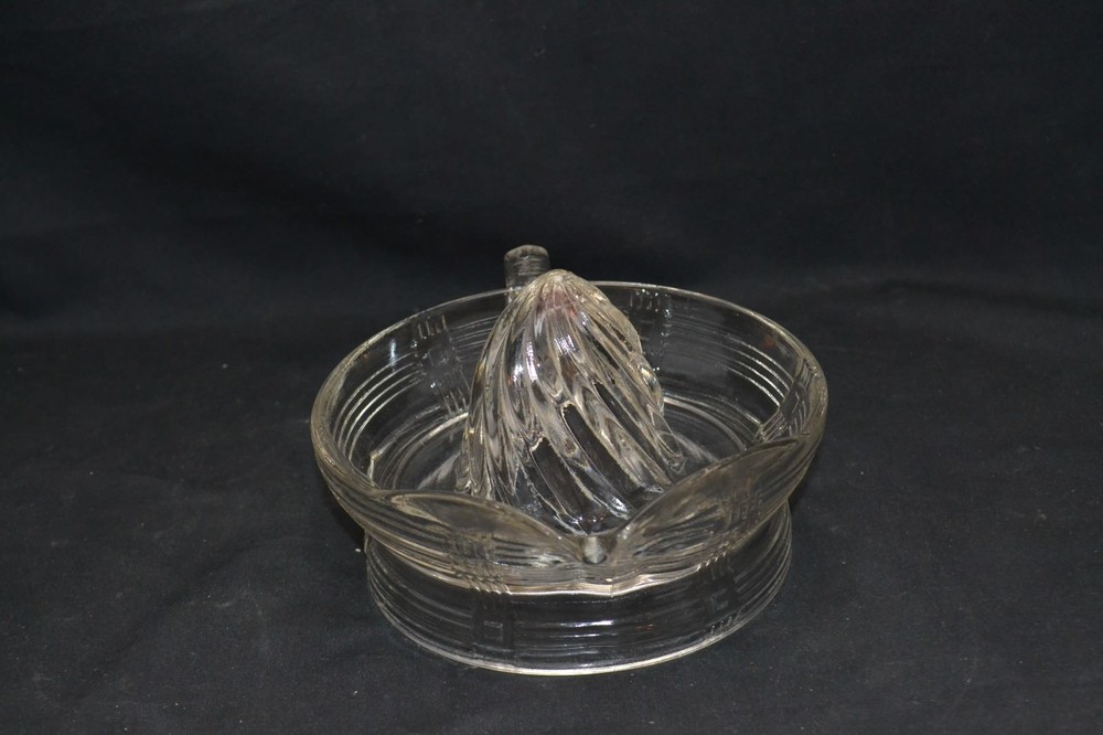 Presssed Glass Juicer For sale beautiful set of glassware. The piece has no chips or cracks. The piece is 6" in diameter . Please email me with any questions or concerns prior to bidding and please stop Baja antiques and collectibles for many other great pieces . 10510bol02180010318