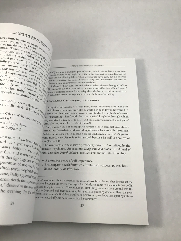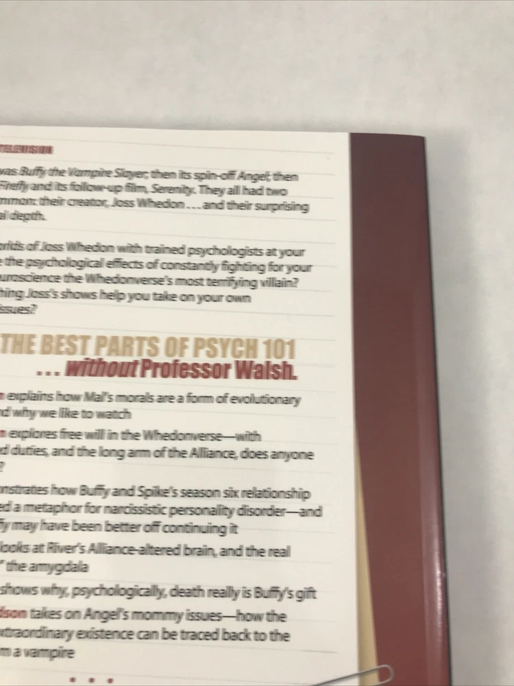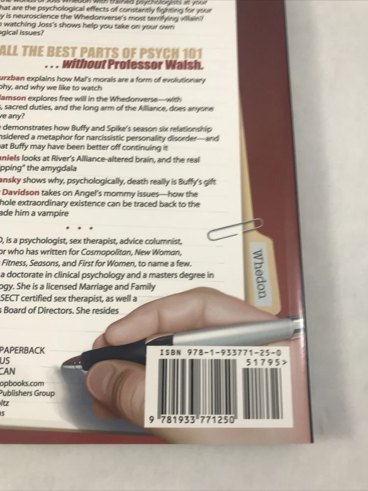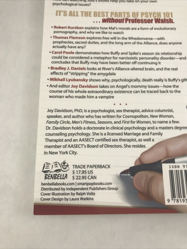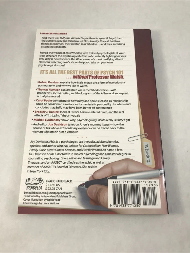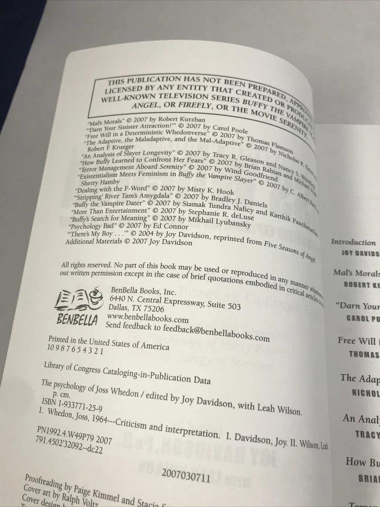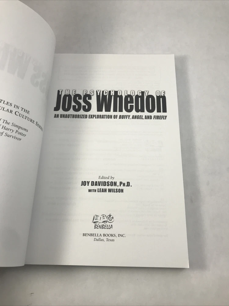 Psychology of Joss Whedon Unauthorized Exploration of Buffy, Angel, and Firefly Lightly or never read. In great shape. See pictures for more details. ________________________________________________________ We take pride in our packing and shipping. All our items are packed and shipped with care. We also like to recycle, so some of our items will arrive in re-used boxes with non-ebay labeling. We can combine shipping, just contact us and we will work it out how you want it. Thanks for taking a look. If you have any questions, we would be happy to answer them.