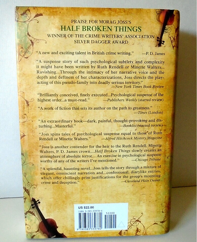 | Reviews | "Morag Joss has been compared to those other two premiere weird sisters in crime, Ruth Rendell/Barbara Vine and Minette Walters. Such compliments are tossed about all too lightly in the publishing world, but this one is so justified that it seems like an understatement."-Washington Post Book World "A cast of expertly drawn characters."-Publishers Weekly From the Hardcover edition., "Morag Joss has been compared to those other two premiere weird sisters in crime, Ruth Rendell/Barbara Vine and Minette Walters. Such compliments are tossed about all too lightly in the publishing world, but this one is so justified that it seems like an understatement."-- Washington Post Book World "A cast of expertly drawn characters."-- Publishers Weekly, "Morag Joss has been compared to those other two premiere weird sisters in crime, Ruth Rendell/Barbara Vine and Minette Walters. Such compliments are tossed about all too lightly in the publishing world, but this one is so justified that it seems like an understatement."--"Washington Post Book World" "A cast of expertly drawn characters."--"Publishers Weekly ", "Morag Joss has been compared to those other two premiere weird sisters in crime, Ruth Rendell/Barbara Vine and Minette Walters. Such compliments are tossed about all too lightly in the publishing world, but this one is so justified that it seems like an understatement."- Washington Post Book World "A cast of expertly drawn characters."- Publishers Weekly From the Hardcover edition., "Morag Joss has been compared to those other two premiere weird sisters in crime, Ruth Rendell/Barbara Vine and Minette Walters. Such compliments are tossed about all too lightly in the publishing world, but this one is so justified that it seems like an understatement."-- Washington Post Book World "A cast of expertly drawn characters."-- Publishers Weekly From the Hardcover edition. |