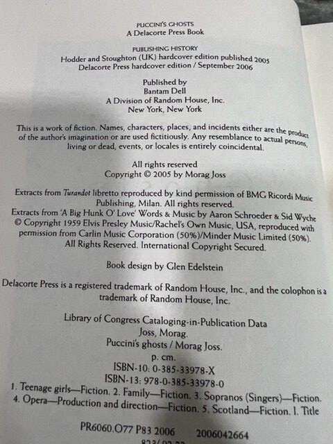 Puccinis Ghosts By Morag Joss Silver Dagger Award Winner Hardcover 2005.