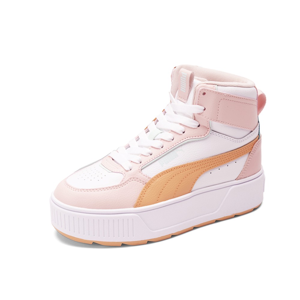 Karmen Rebelle Mid Lace Up Sneakers (Little Kid-Big Kid) Product Details Suede upper Rubber midsole Rubber outsole PUMA Formstrip on medial and lateral sides PUMA No.2 Logo on upper Karmen enters the zone with attitude. Featuring an edgy rugged sole and bold and blocky design, she's setting the bar for unconventional style that pops. But she's got a little softness in her step, too: slip into the smooth suede upper and SoftFoam sockliner and see for yourself. Additional Details Color: Orange, Pink, White Occasion: Gender: Girls Age: Youth Brand: Puma