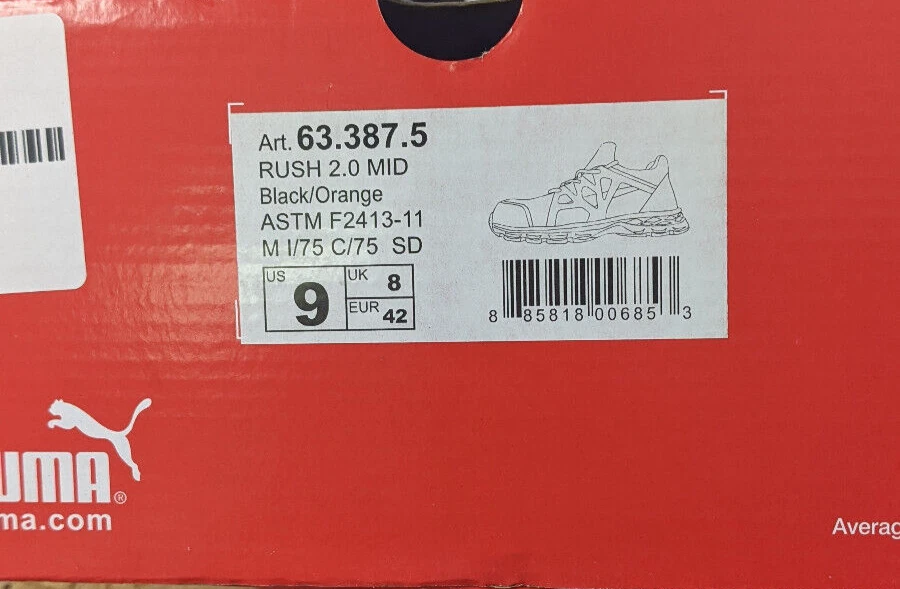 Puma Rush 2.0 Mid work sneakers for men in good condition. Ships in the original shoe box. - Composite safety toe - Slip resistant - Static dissipative