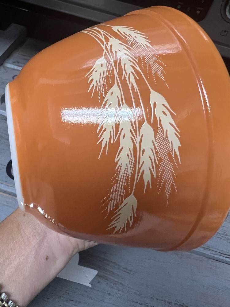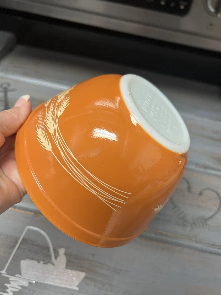This Pyrex mixing bowl is a must-have for retro lovers! The Harvest Wheat design adds cozy vintage vibes to any kitchen, and the durable glass holds up perfectly for mixing, serving, or display. Its compact 5.5" size is great for small tasks, and the glossy finish makes it as pretty as it is practical. A charming piece of mid-century nostalgia that works just as well today—whether you're baking cookies or showing off your collection!