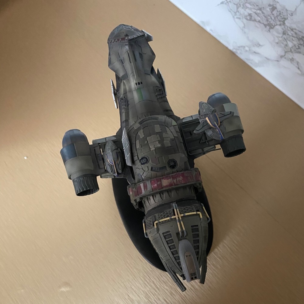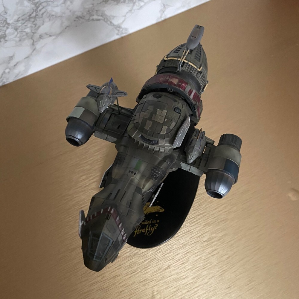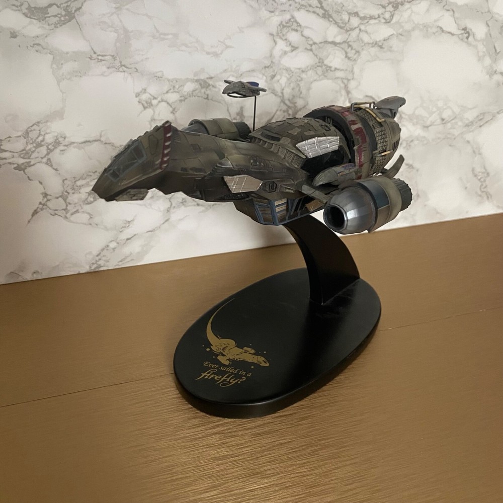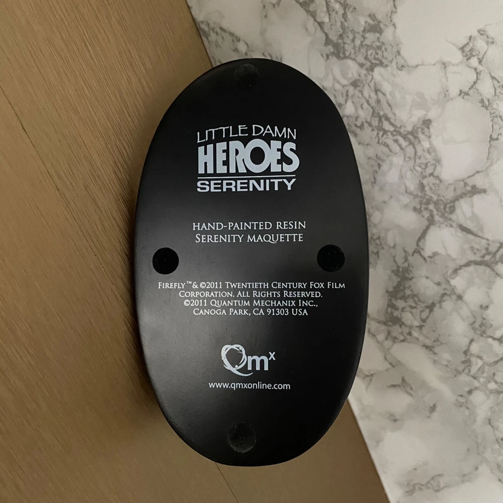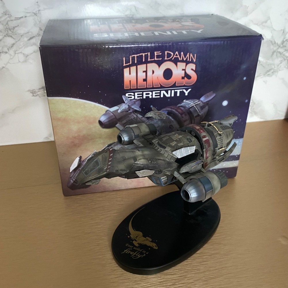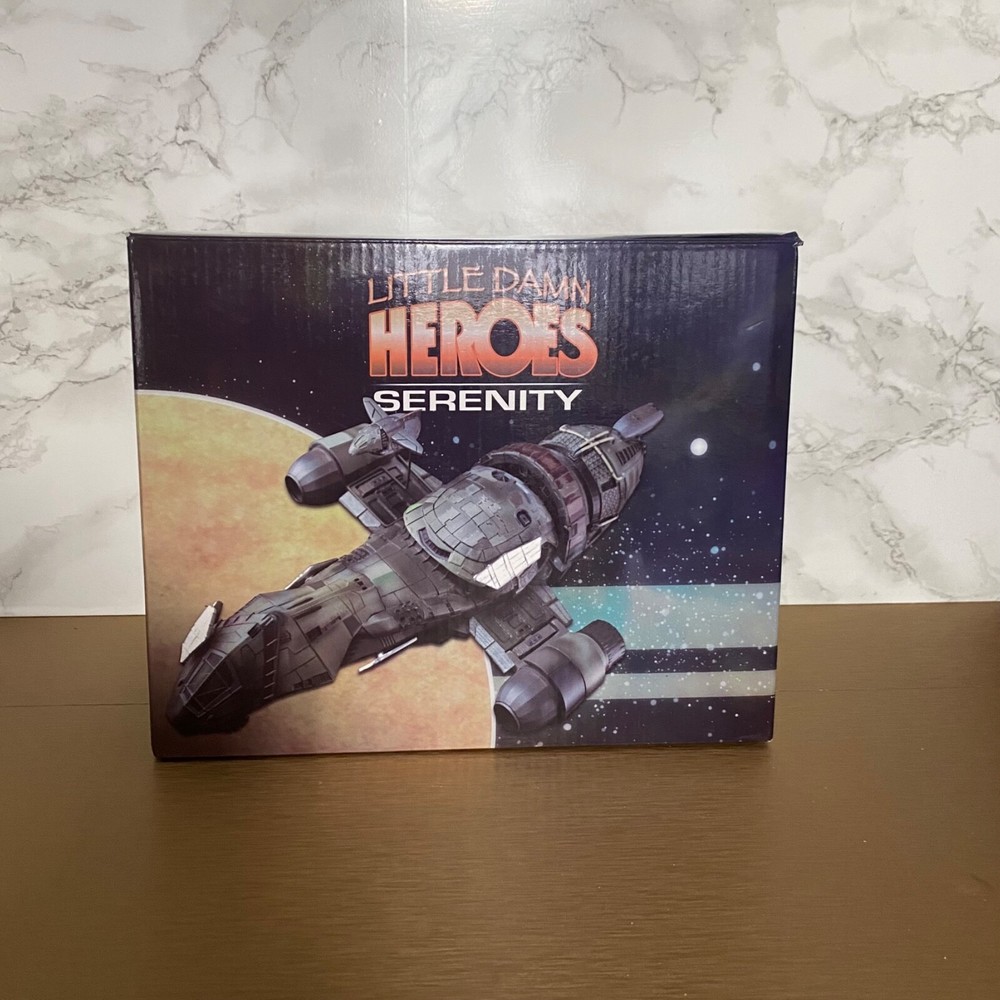 One of science fiction's most beloved spaceships is the workhorse Firefly-class transport named Serenity Dubbed the 10th Big Damn Hero by Joss Whedon, the Little Damn Heroes wouldn't be complete without her QMx has recreated Serenity in 1:400 scale -- about 8 inches long -- out of dozens of parts, some as small as a millimeter She was created using the show's actual CG files, so she is screen accurate and painted by hand. The Little Damn Heroes Serenity Marquette comes with a sleek black stand and two small shuttles