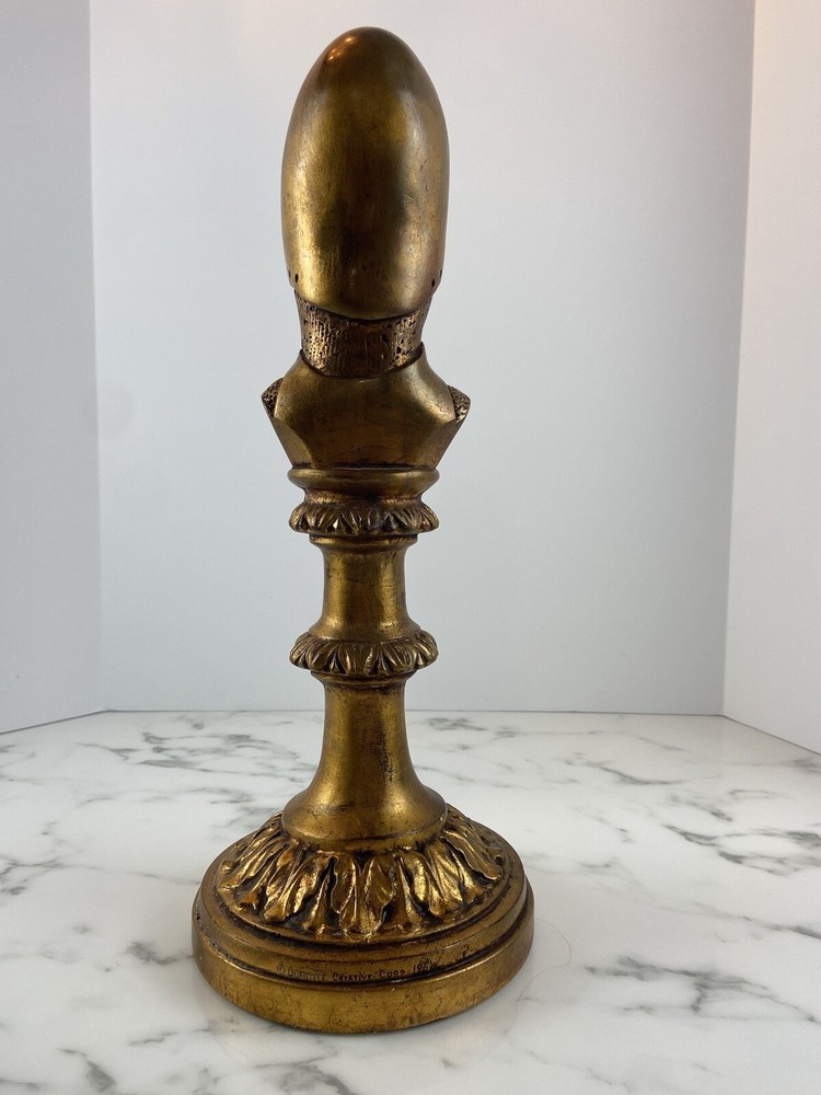 quartite creative corp Statue 1961. Bishop in gold with makers mark on side please see photos, this is a Vintage piece with wear, bought from an antique dealer in Florida. I have found one that has sold on eBay auction in 2022 for close to 300.00. Replicas sold for less with no makers marks. Collectors item rare.