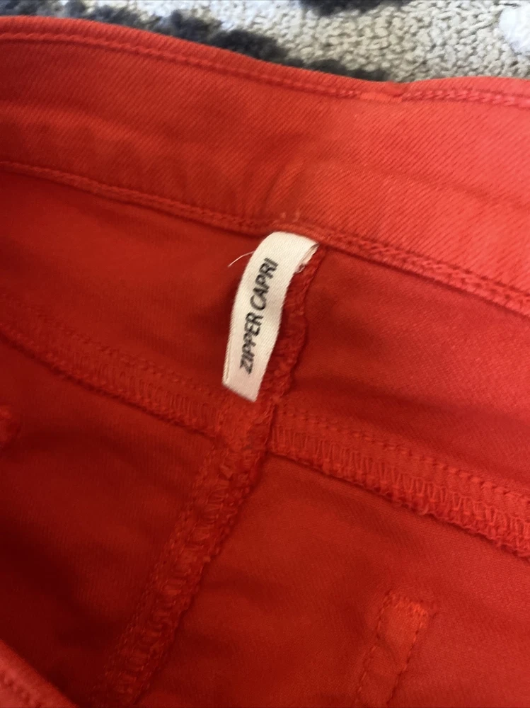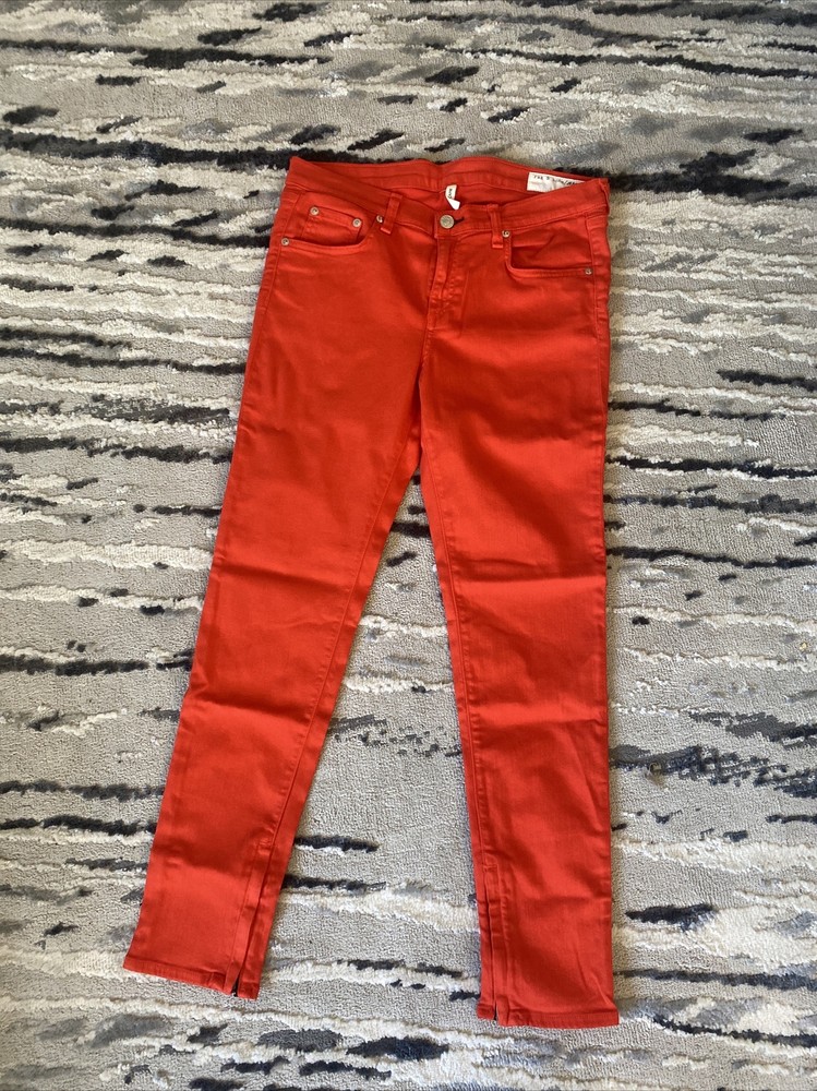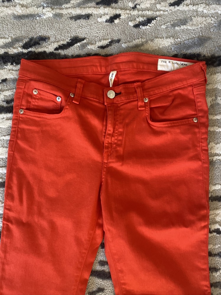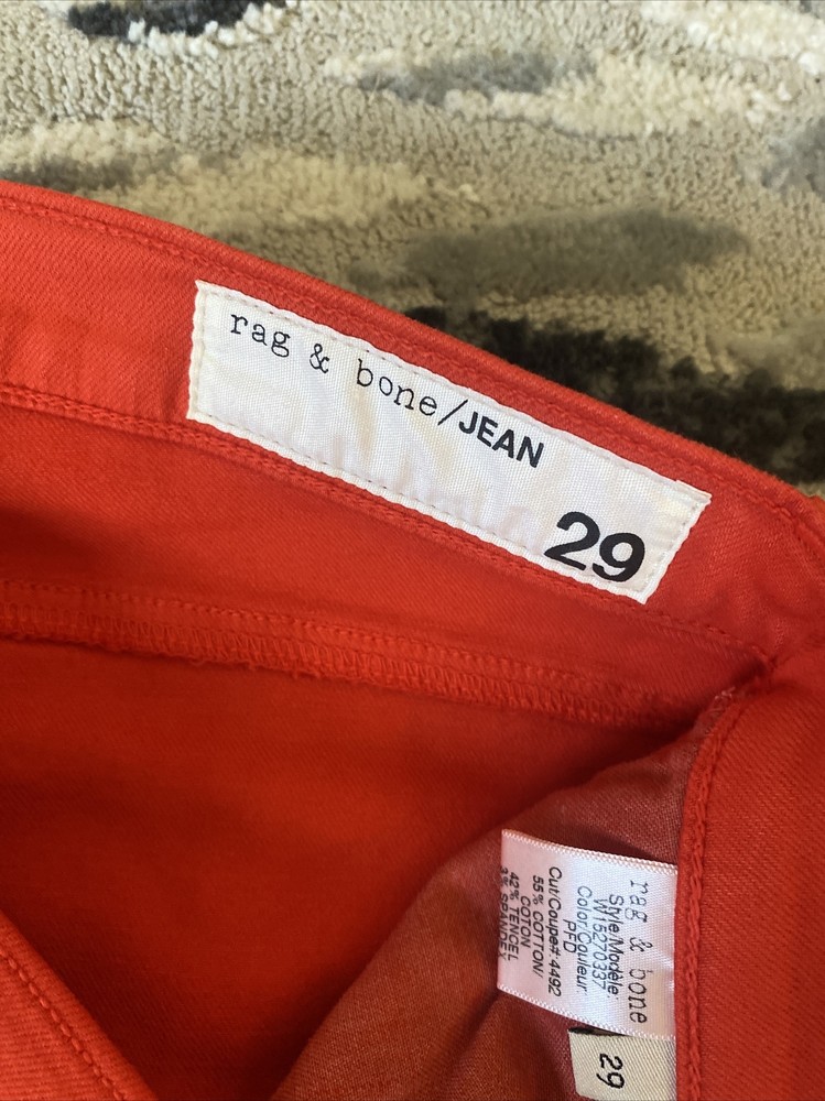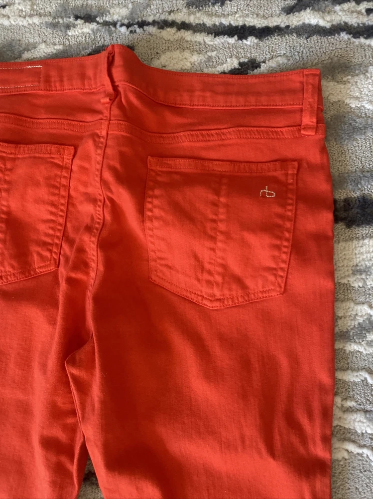These RAG & BONE capri jeans are a must-have! The stretchy blend makes them super comfy, and the zipper ankle adds a stylish edge. The mid-rise fit flatters, and the bright orange color pops. Perfect for dressing up or down—love how they feel and look. Great quality and made in the USA!