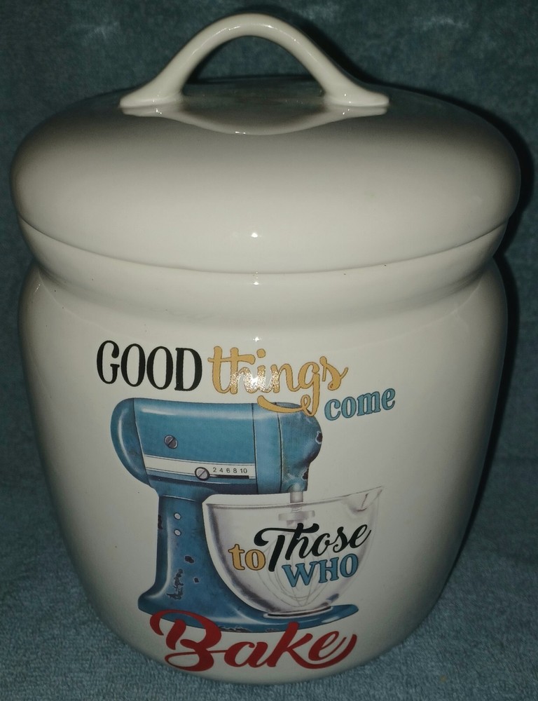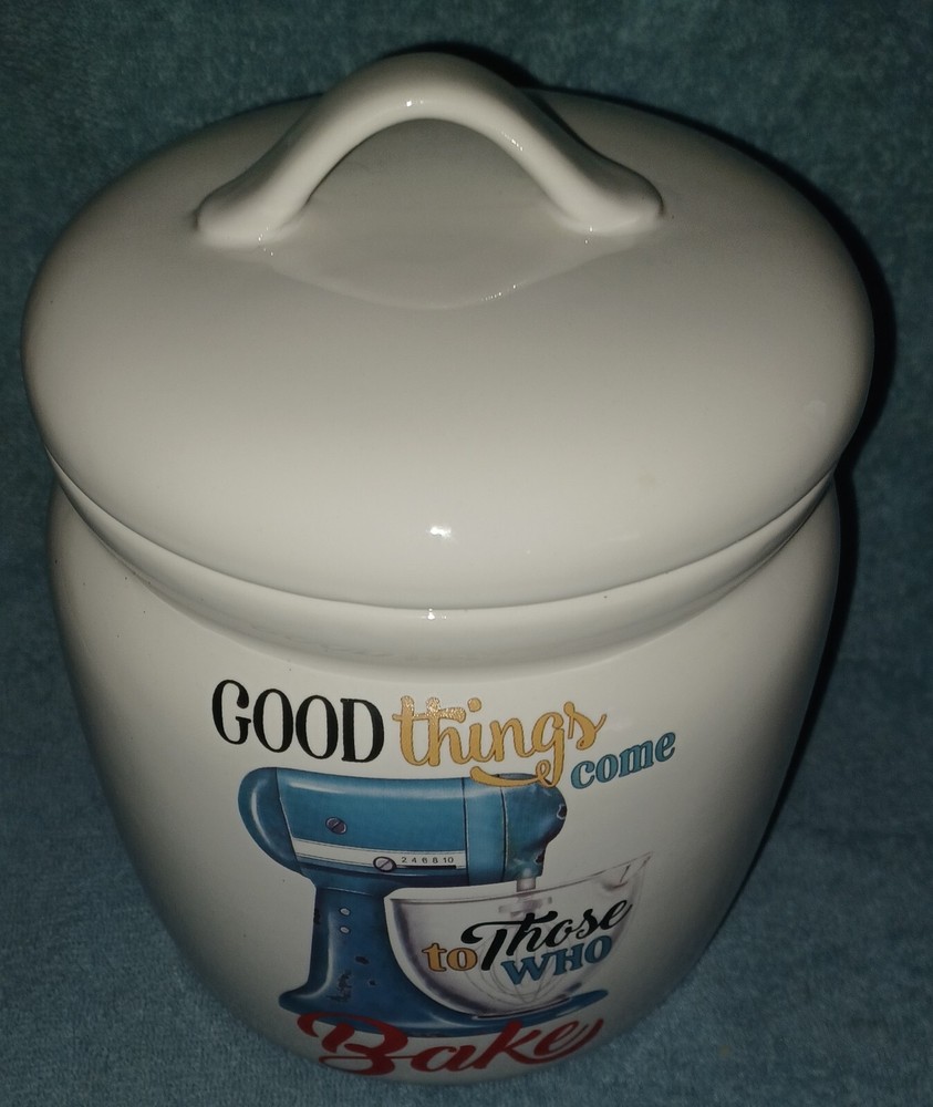 RARE Creative CO-OP "Good Things Come To Those Who Bake" Ceramic Cannister w/ Sealed Lid. Appx 8"H. Condition is "NEW" Never Used - Displayed Only(please see ALL photos as they are part of the description). No Cracks, Chips or Crazing. Please visit and follow my store "Very Vintage 2" for a HUGE selection of RARE & UNIQUE Items. Ships USPS DETAILS: Store your baked goods in style with this Creative CO-OP ceramic canister. Featuring a charming quote that reads "Good Things Come To Those Who Bake", this canister is perfect for any kitchen. Made from high-quality ceramic, it comes with a matching sealed lid to keep your treats fresh. Ideal for collectors of kitchen and home items, this canister is a must-have for those who love baking. With its elegant design, it can be used as a decorative piece as well as a functional one. Whether you're storing cookies, brownies, or any other baked goods, this canister is the perfect addition to your kitchen.