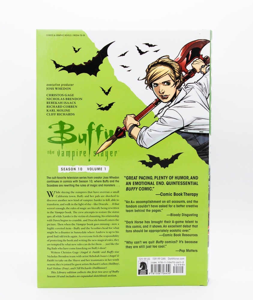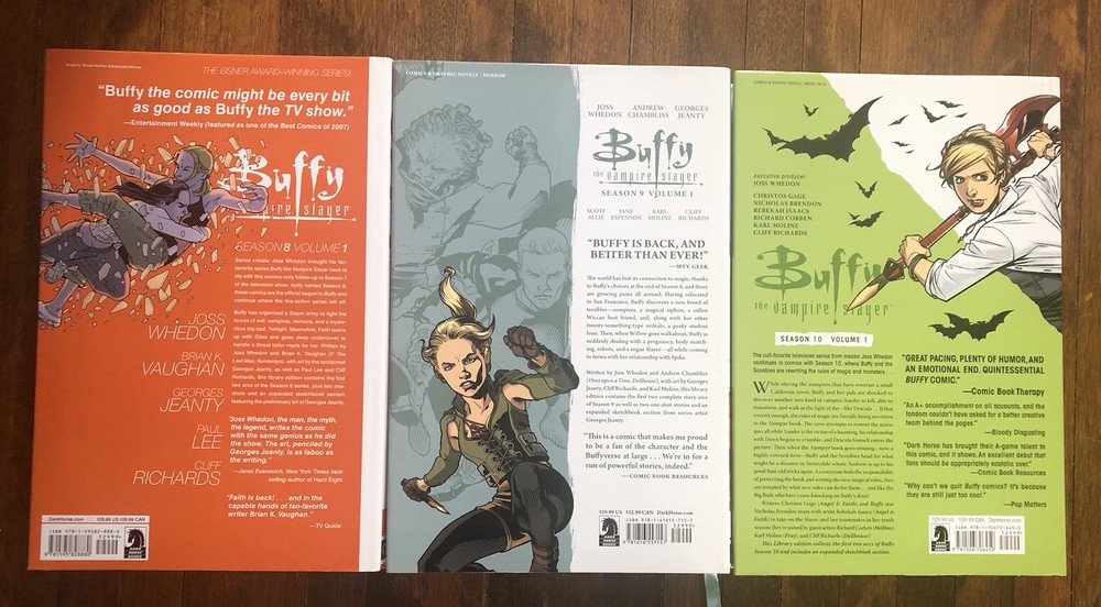 Buffy The Vampire Slayer Season 8-10 Vol.1 Hardcover Joss Whedon RARE. Never READ- spine never cracked! Extremely rare and hard to find. *** Shipping is high for worldwide buyers because these are HEAVY BOOKS *** I donโt have experience selling outside of North America and Europe so if you are located in Asia, Australia, ME+ please message upon purchase. If you are located in the USA ๐บ๐ธ I can ship for approx $100 and will refund you partially upon purchase (except Hawaii and Alaska). 1. Brand New - Buffy the Vampire Slayer Season 9 Vol 1 1st Edition Hardcover published 2015 Josh Whedon Never READ- spine never cracked! Extremely rare and hard to find. This item is excellent condition with the exception of tiny shelf wear. See photo of top corner of spine. 2. Buffy The Vampire Slayer Season 8 1st Edition Vol.1 Hardcover Joss Whedon RARE. Never READ- spine never cracked! Extremely rare and hard to find. Excellent condition- 2012. 3. Buffy The Vampire Slayer Season 10- 2nd Edition Vol.1 Hardcover Joss Whedon RARE. These are all REAL photos of the books.Please see ALL photos for details. This item is in EXCELLENT with the exception of tiny shelf wear. See photo of top corner of spine. Two tiny pin prick imprints on back of book dust sleeve (Barely visible.) 2018 This will be shipped in a box with great attention to packaging for safe arrival. Any questions, please ask! Please note it can take us up to 5 business days to process an order. More photos available upon request ๐