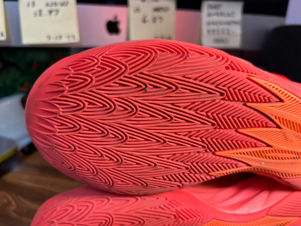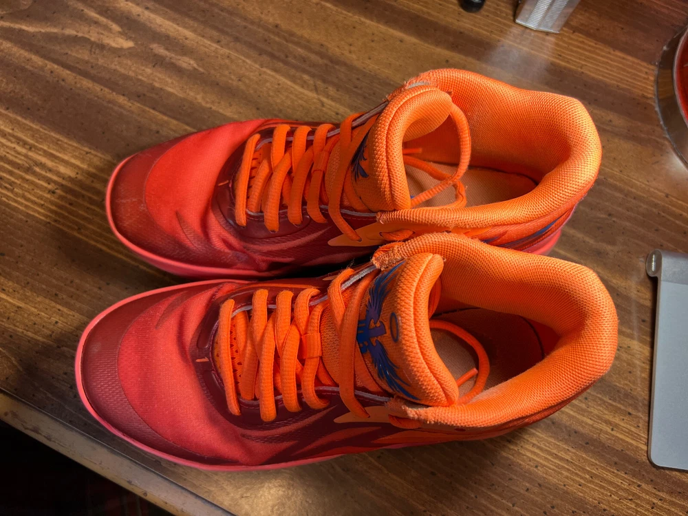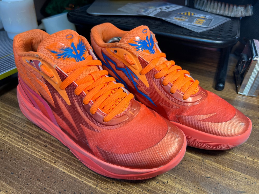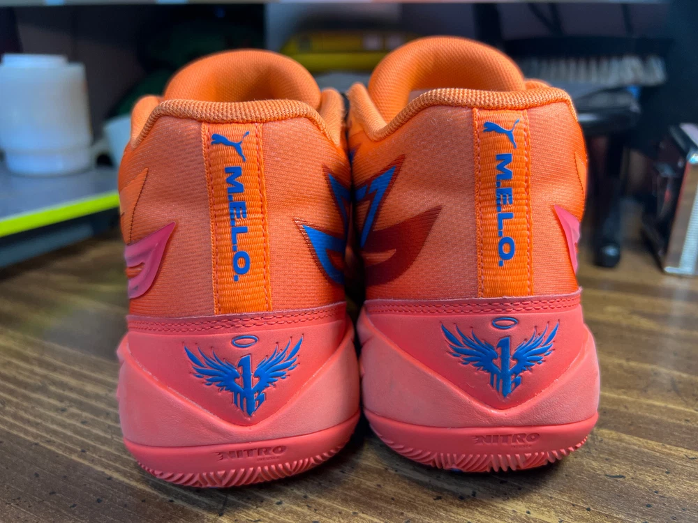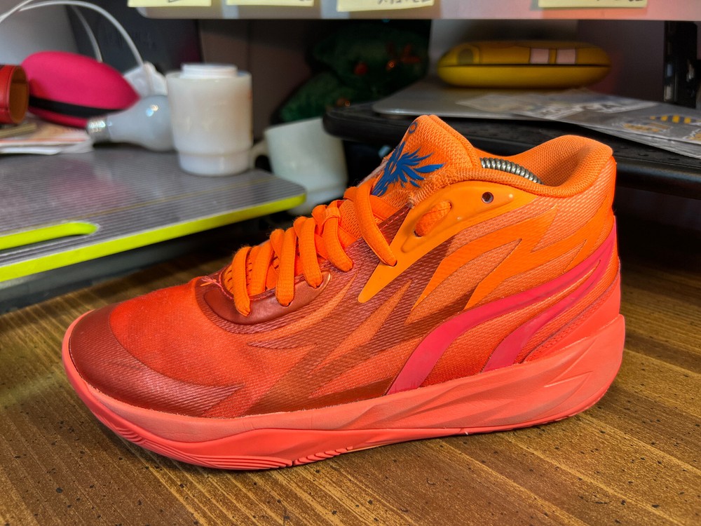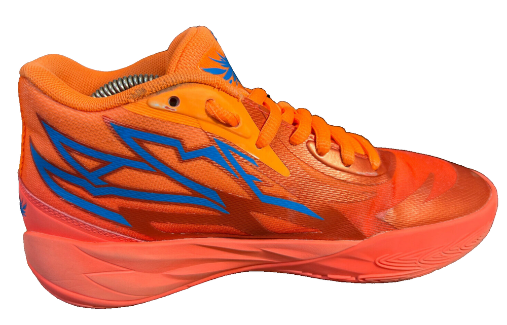 Hidden when worn, are two small wear spots on the inside of the collar of each shoe ~ See the last 5 pictures RARE Puma MELO MB.02 Supernova Fiery Coal/Orange Basketball 377403-01 Men sz 6.5