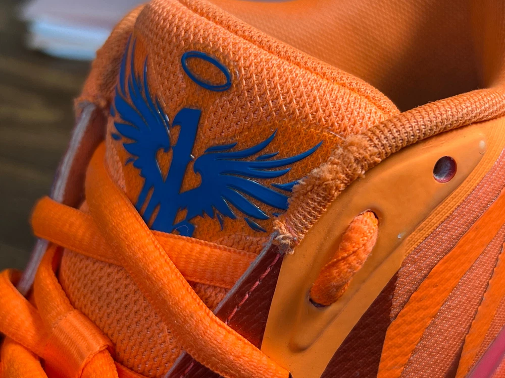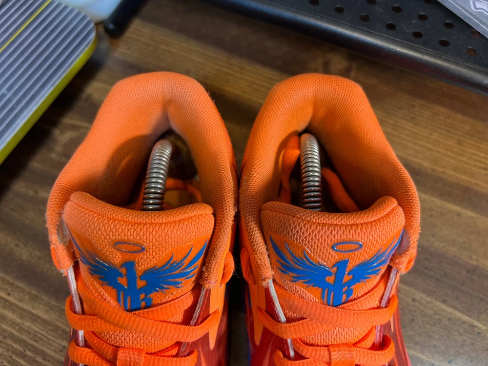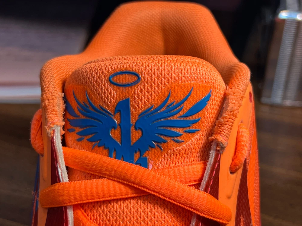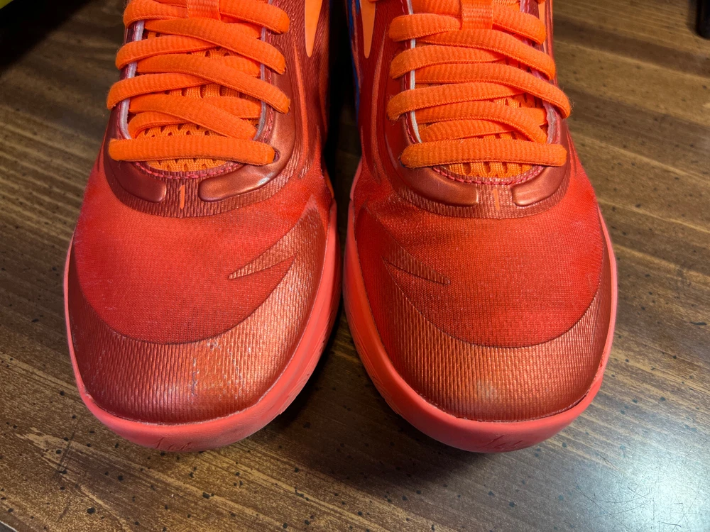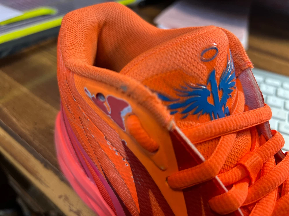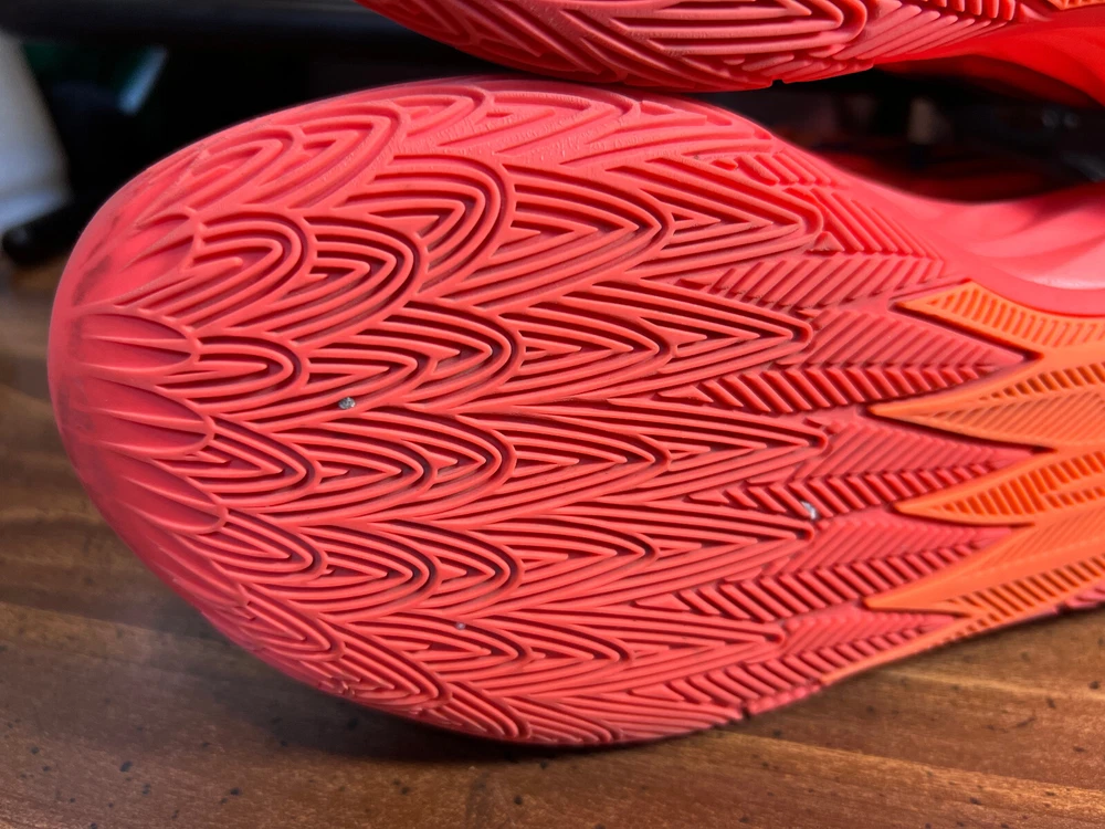 Hidden when worn, are two small wear spots on the inside of the collar of each shoe ~ See the last 5 pictures RARE Puma MELO MB.02 Supernova Fiery Coal/Orange Basketball 377403-01 Men sz 6.5